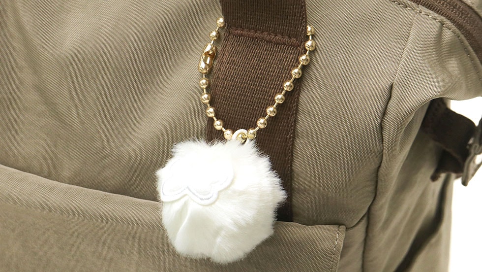 本体には、「旅先でハッピーが生まれますように。そして、元気で帰ってきますように。」そんな願いをこめられた旅のお守り「カナナ」を付属しており、取り外しもできて、いつでもどこでも一緒に行動することができます。