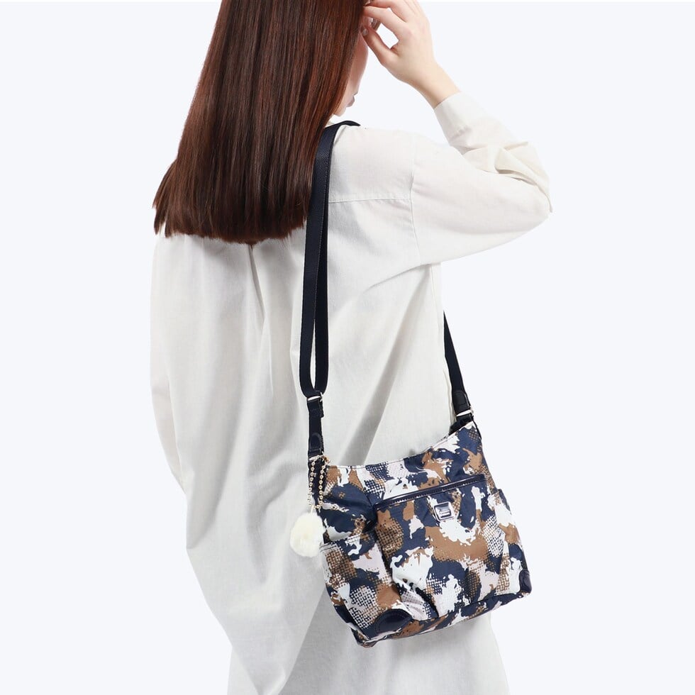 柔らかく軽量な素材と、カジュアルなスタイルに馴染むアース柄が魅力のシリーズ『エール2 LTD アース』のショルダーバッグ。目を惹くカラーリングがいつものコーデにアクセントを加えてくれます。普段お使いの長財布もゆったり収まるサイジングで、普段使いはもちろん旅行先でも大活躍するアイテムです。