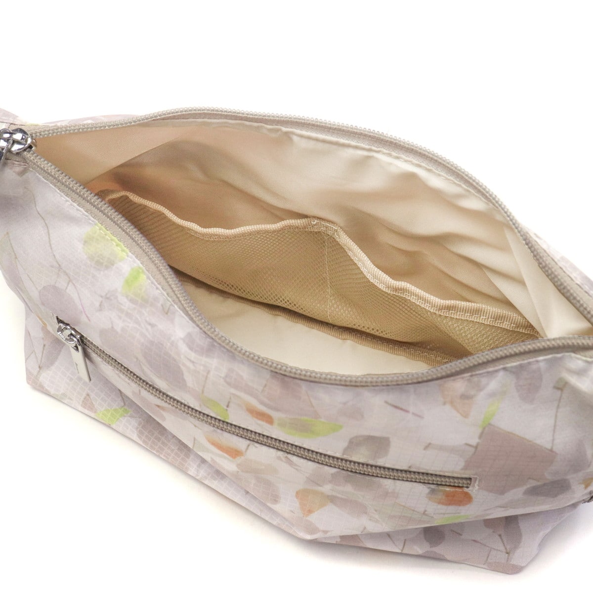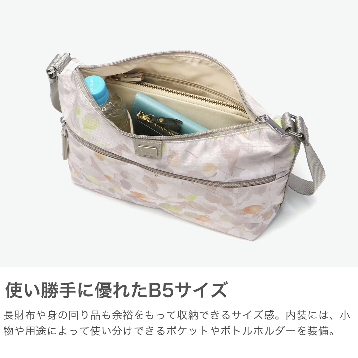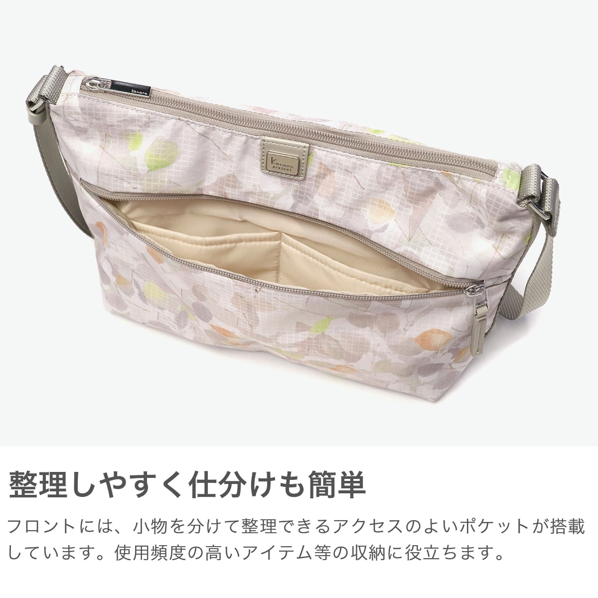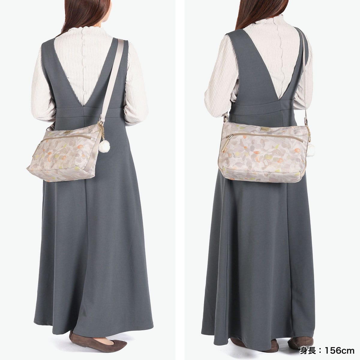 デイリーからトラベルまで幅広く活躍するカジュアルシリーズより、上品な光沢感のある素材を採用した、きれいめスタイルにもなじむ横型ショルダーが登場。軽量でコンパクトながら6L収納可能で、B5サイズもすっきり収まります。ナチュラルな柄が装いに優しく映え、軽やかなお出かけに品を添えます。