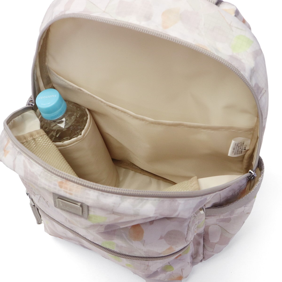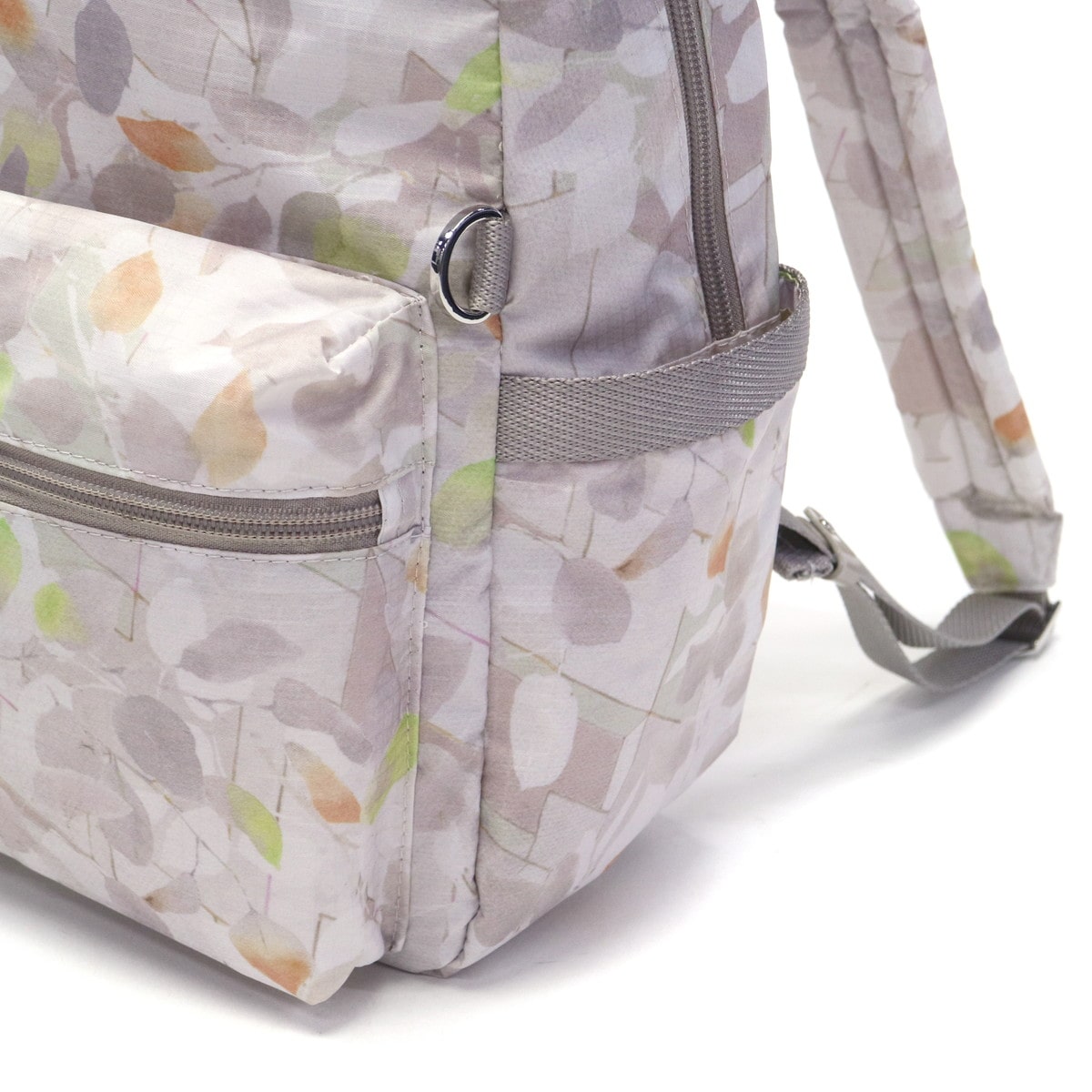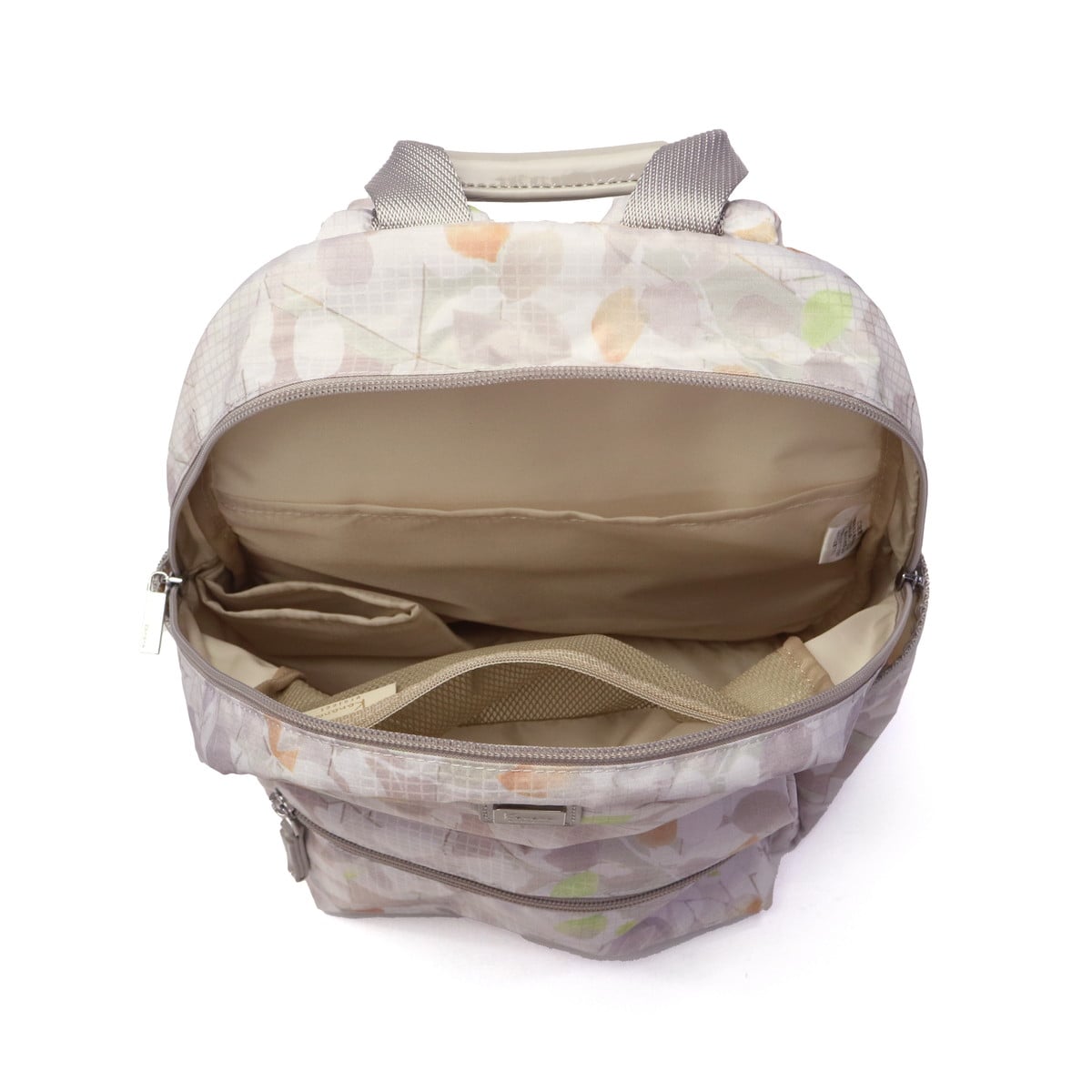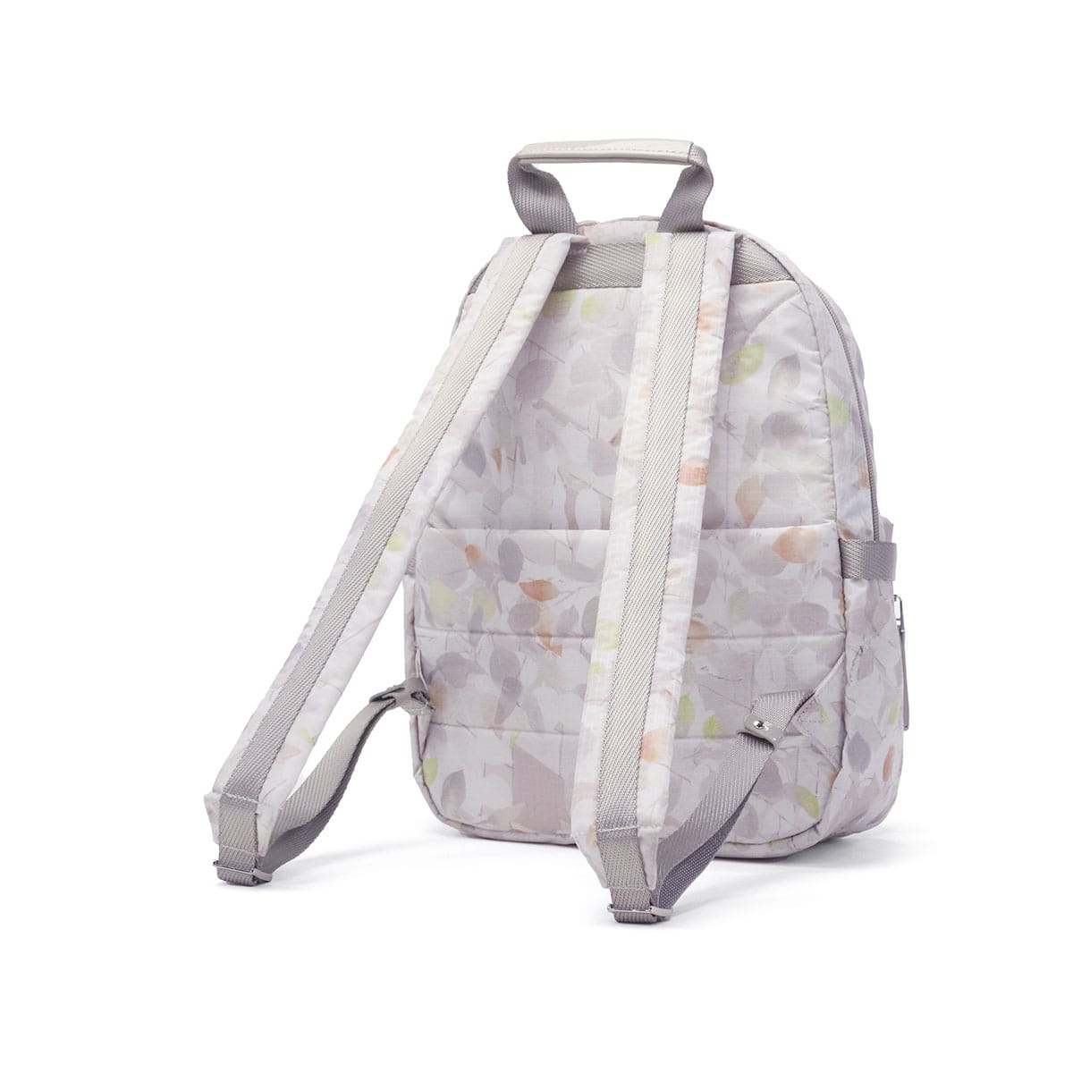 デイリーからトラベルまで幅広く活躍するカジュアルシリーズより、上品な光沢感のある素材を採用した、きれいめスタイルにもなじむリュックサックが登場。B5サイズ対応・13L容量で、通勤やお出かけにちょうどいい使いやすさです。やさしいボタニカル柄が、大人のスタイルにさりげない彩りを添えます。