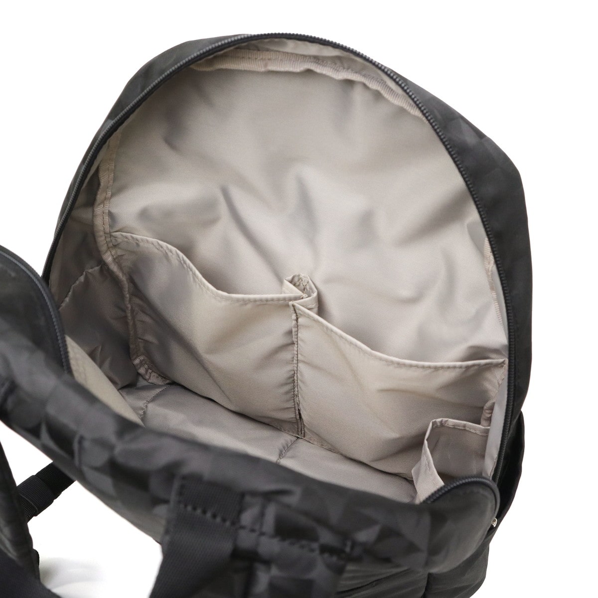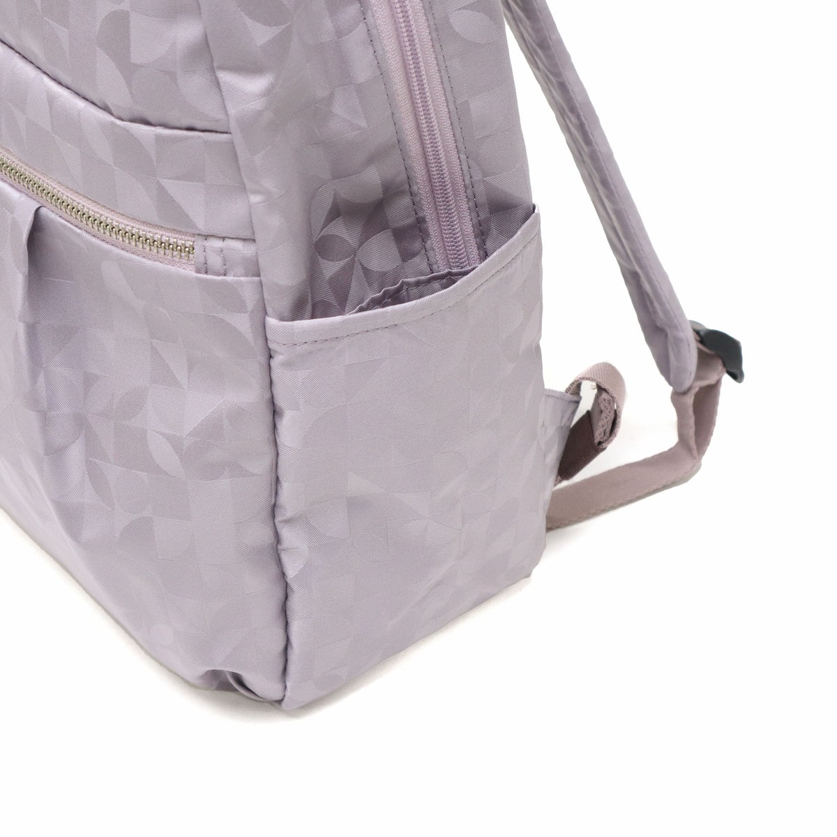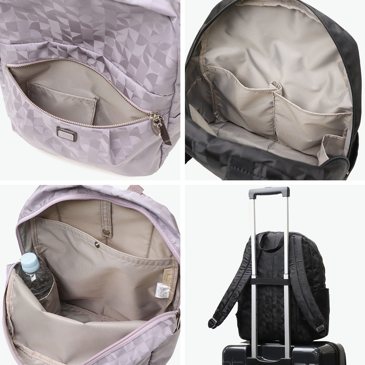 Kananaロゴをオリジナルにアレンジした柄を、上品なジャガード織で仕立てたリュックサック。前ポケットのメタルファスナーと揺れるチャームがとてもエレガントな印象です。軽量でコンパクトな見た目ながら収納力も抜群で、デイリーからトラベルまで幅広く活躍してくれます。