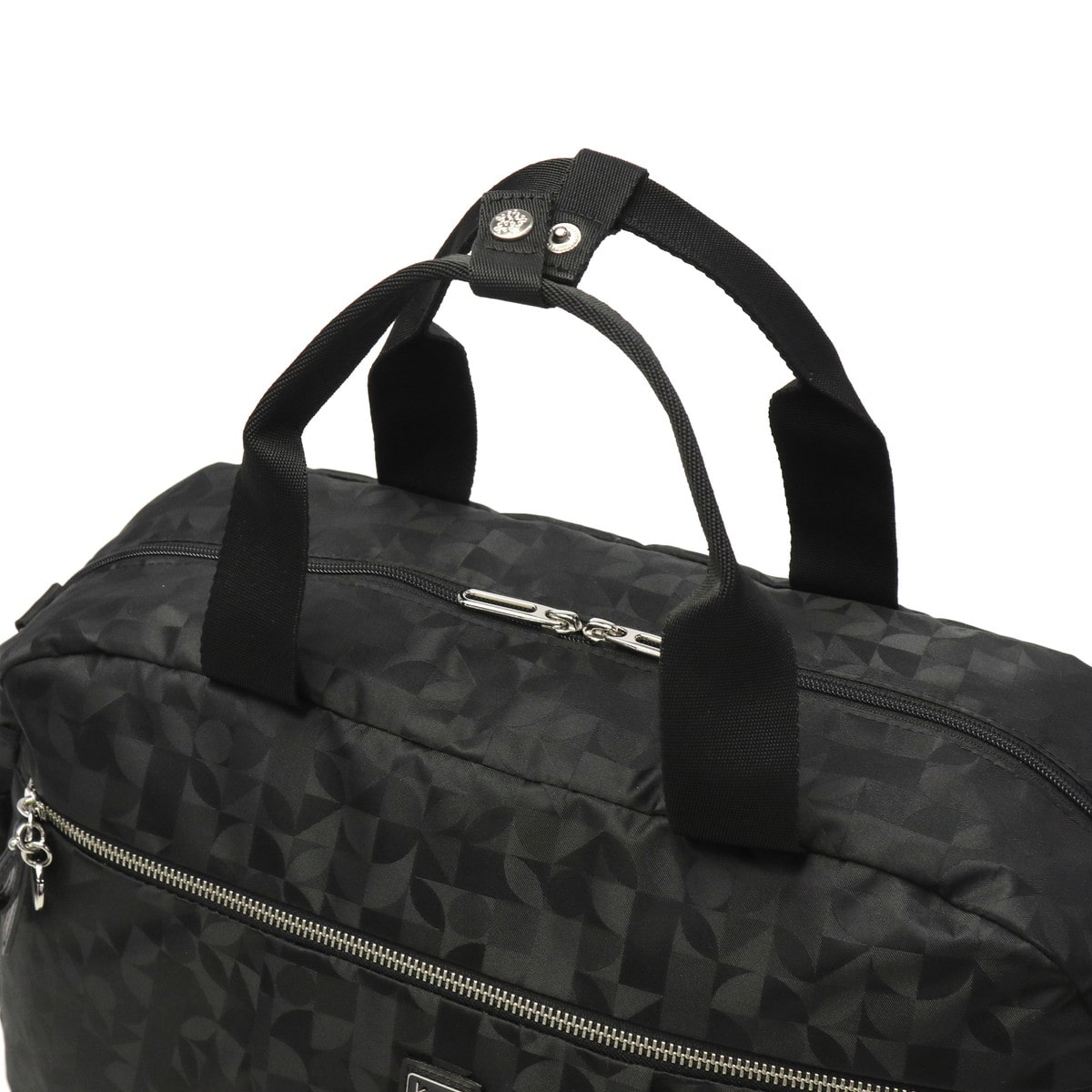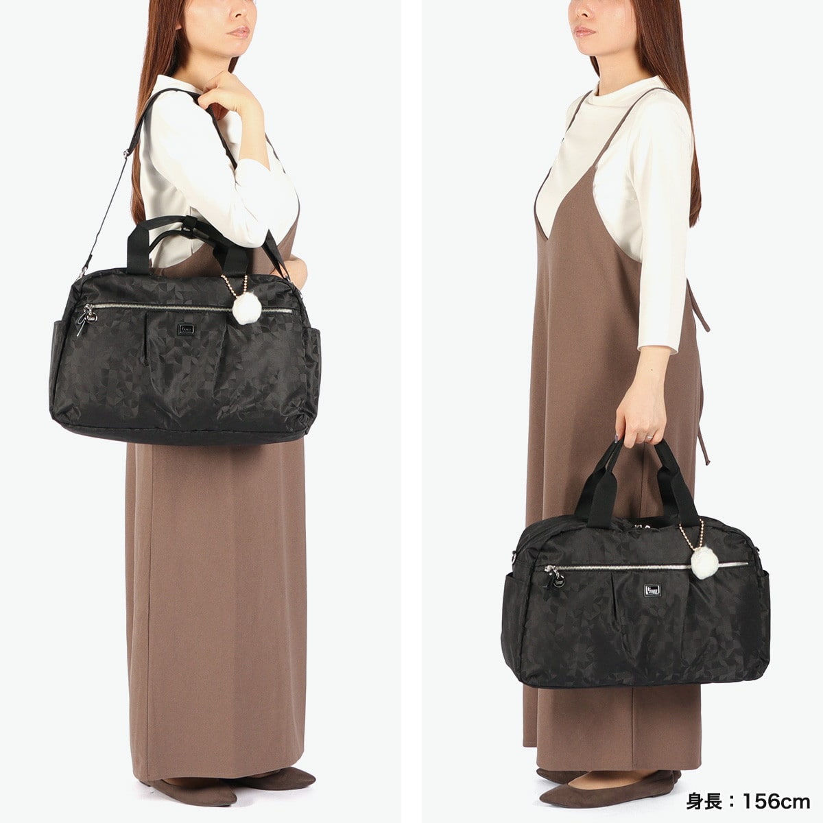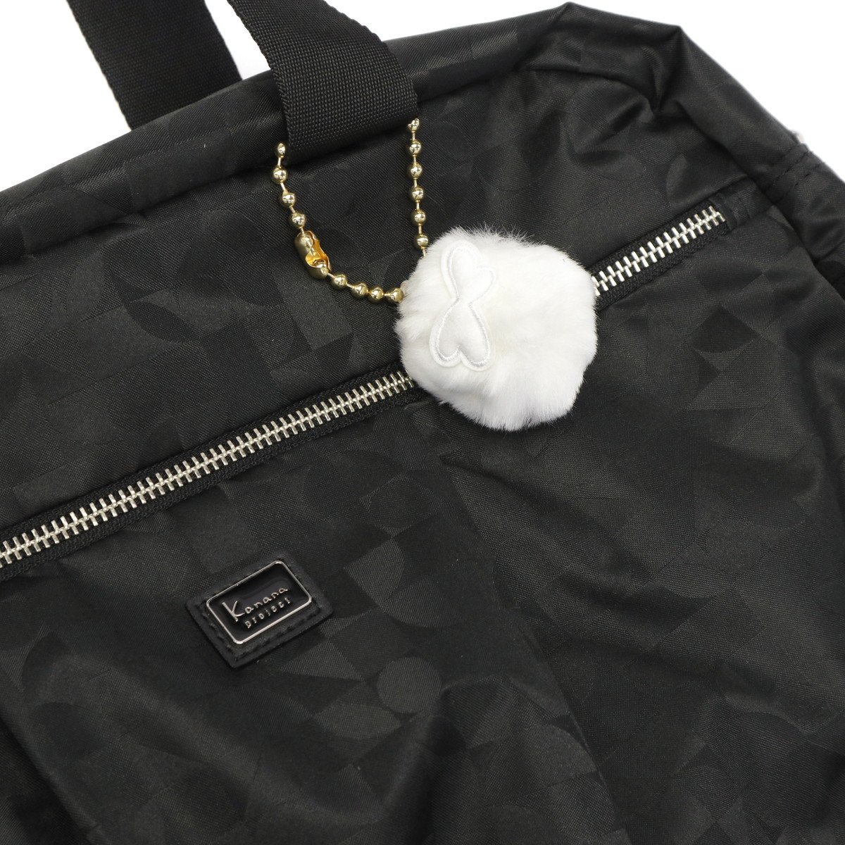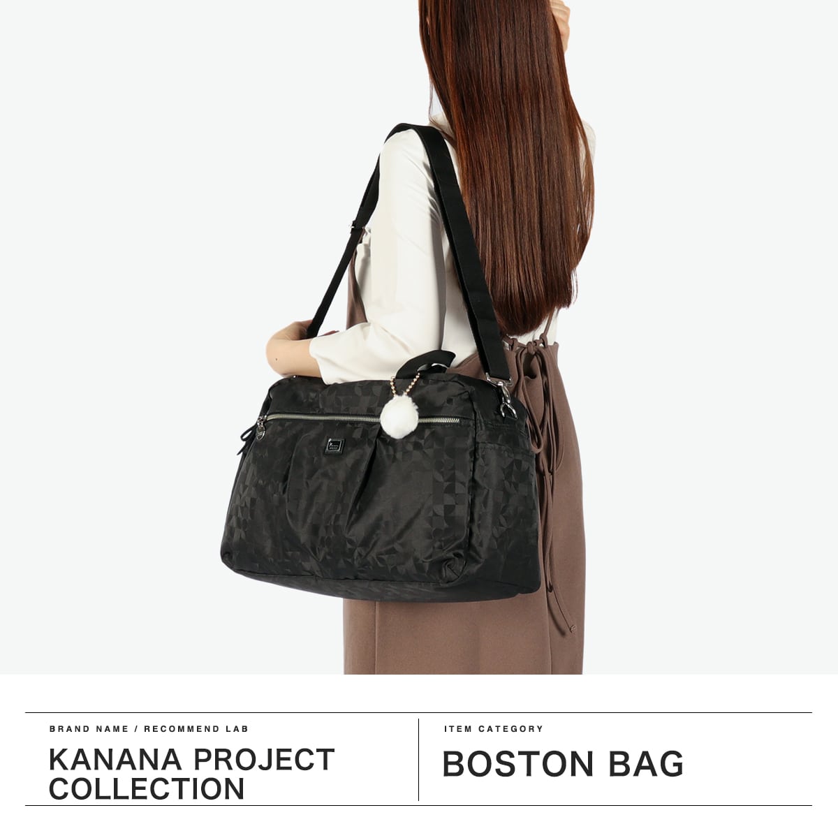 Kananaロゴをオリジナルにアレンジした柄を、上品なジャガード織で仕立てた2WAYボストンバッグ。前ポケットのメタルファスナーと揺れるチャームがとてもエレガントな印象です。スーツケースとセットアップ可能でトラベルシーンでの移動も快適に行えます。