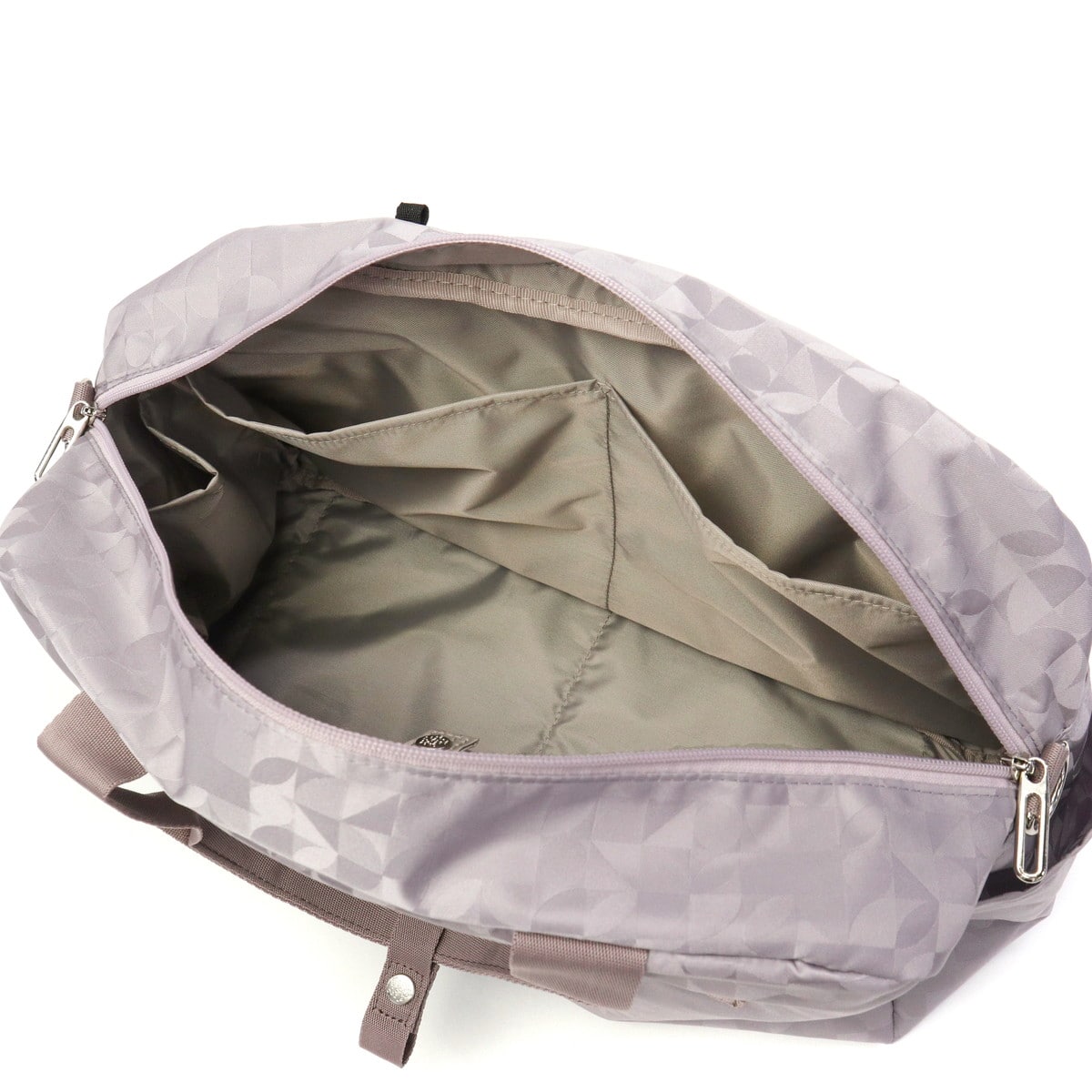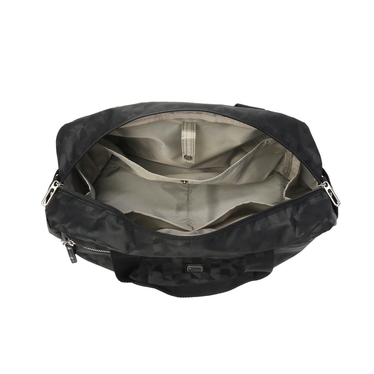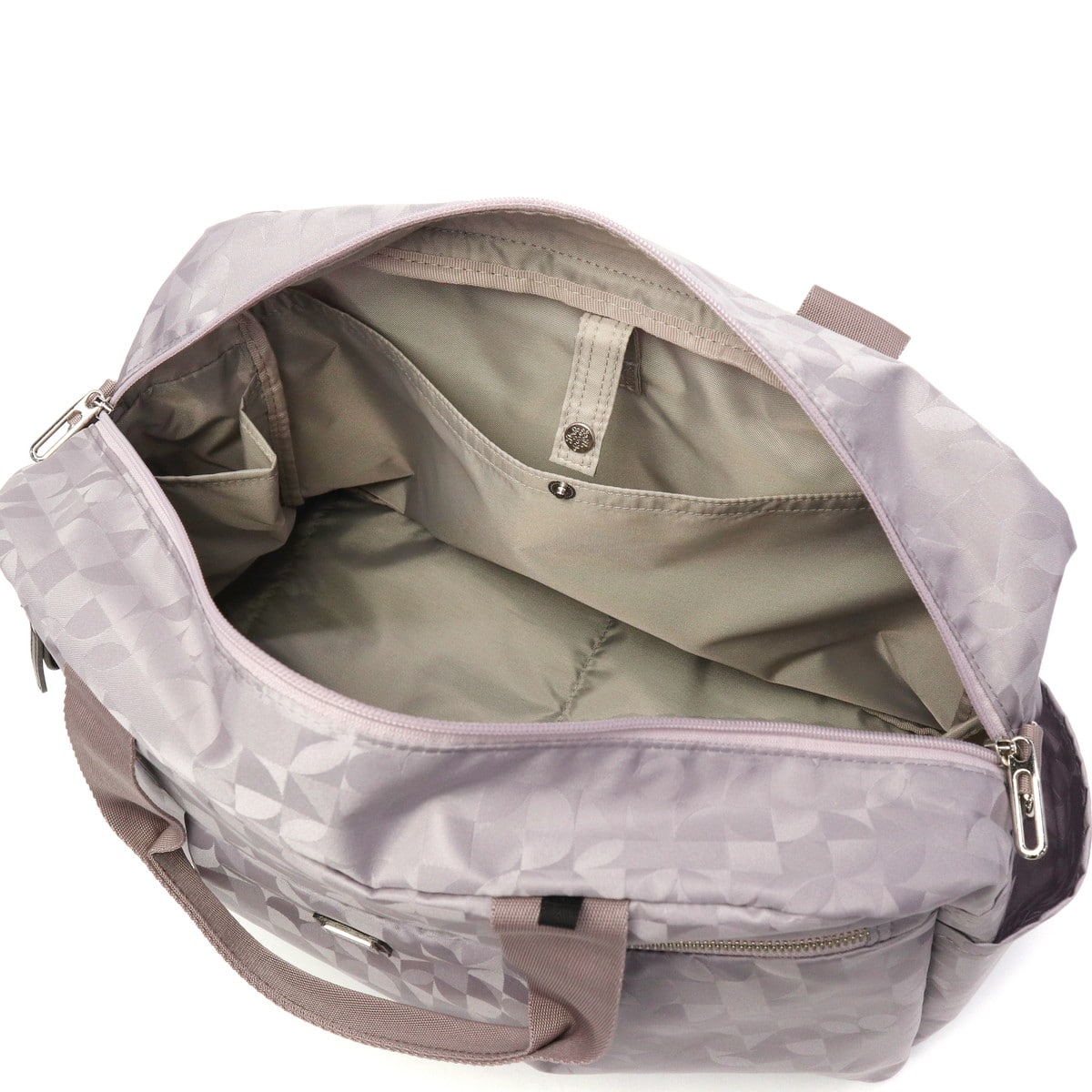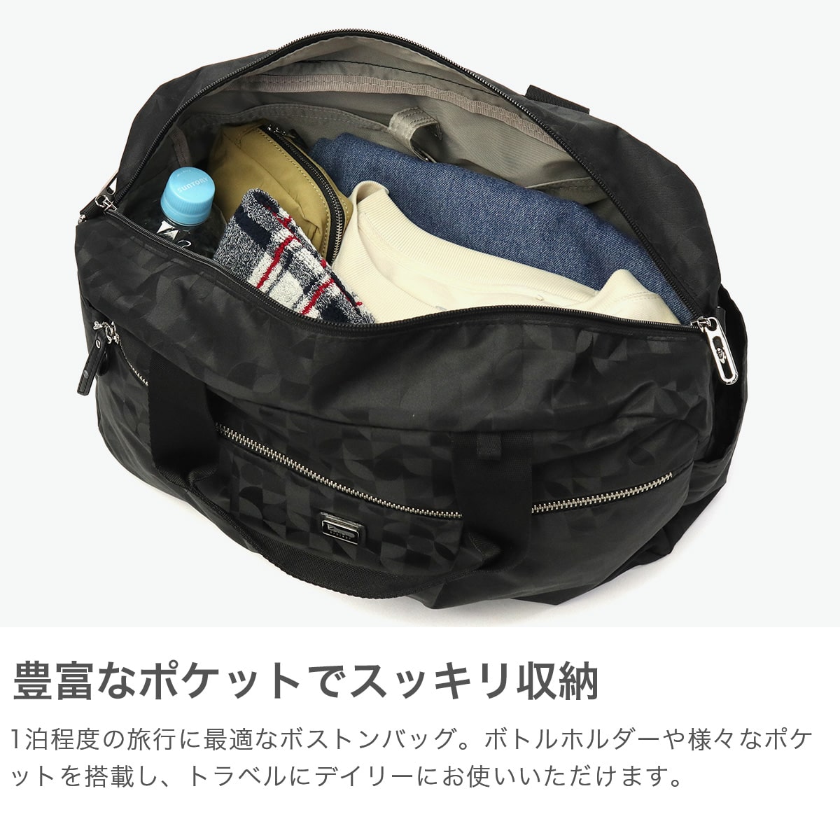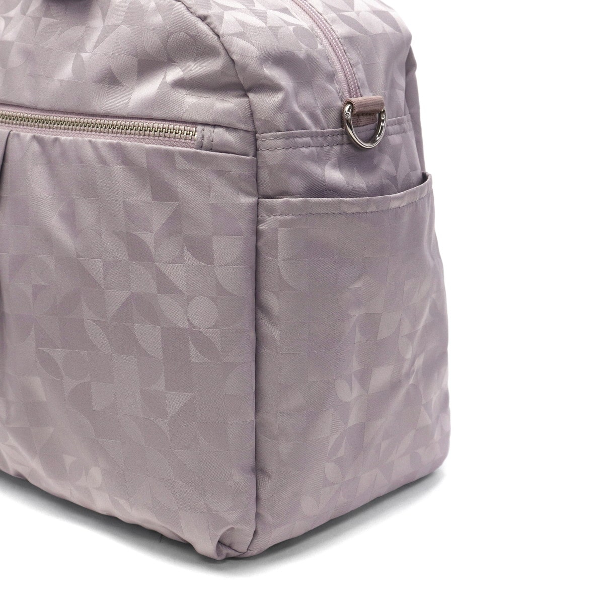 Kananaロゴをオリジナルにアレンジした柄を、上品なジャガード織で仕立てた2WAYボストンバッグ。前ポケットのメタルファスナーと揺れるチャームがとてもエレガントな印象です。スーツケースとセットアップ可能でトラベルシーンでの移動も快適に行えます。