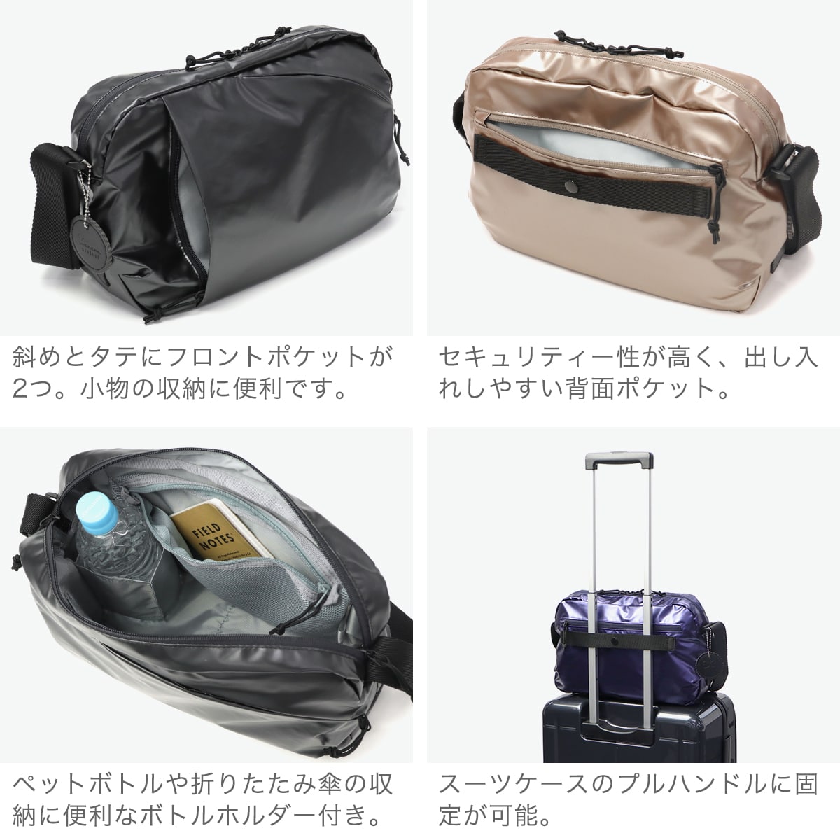 落ち着いたパール感のある素材を用いたカジュアルでシンプルな「ラポシュ/LaPoche」シリーズ。大人のリラックススタイルにフィットしコーディネートのアクセントとなるデザインのショルダーバッグです。軽量で、雨や汚れに強い素材を使用したデイリー使いしやすいアイテムとなっています。