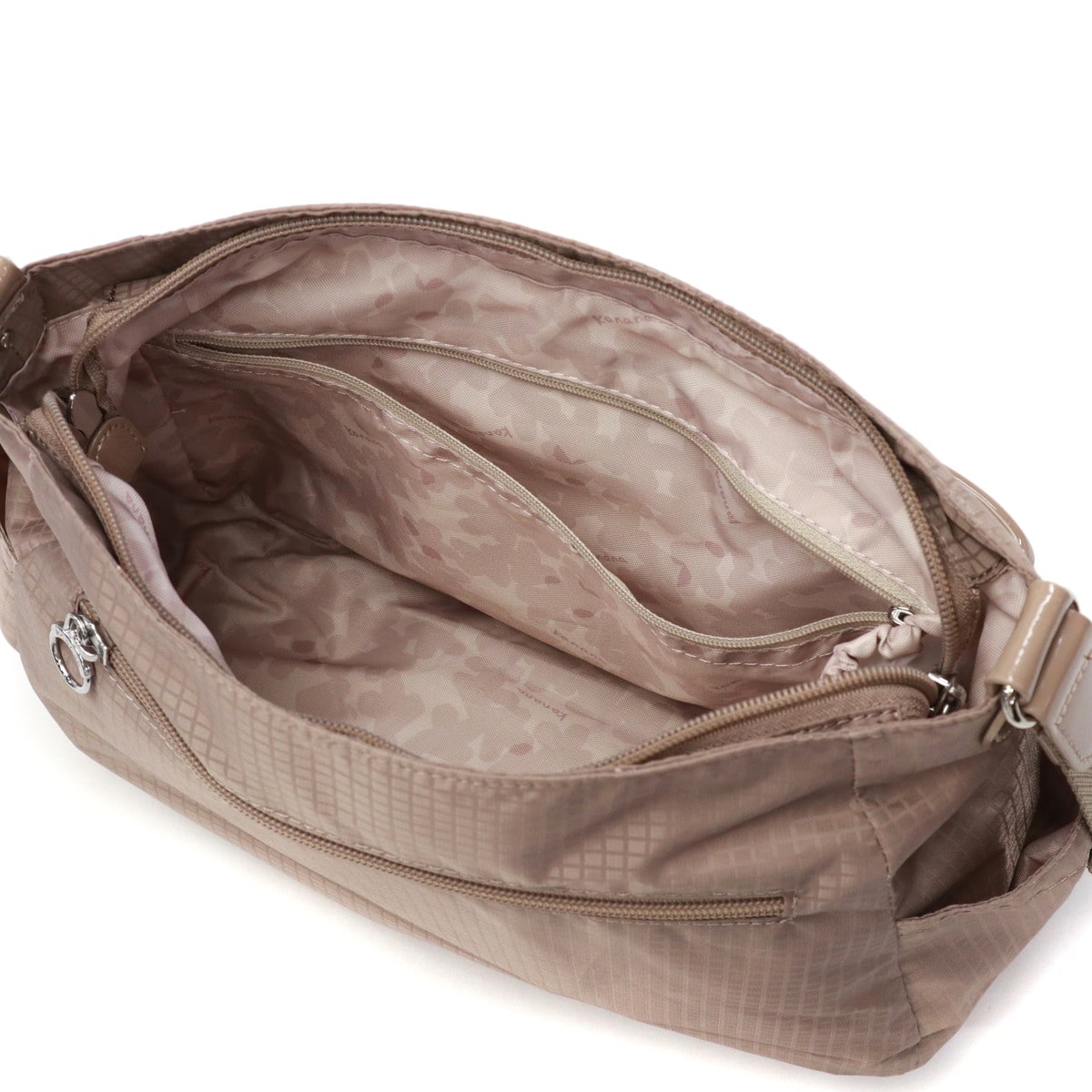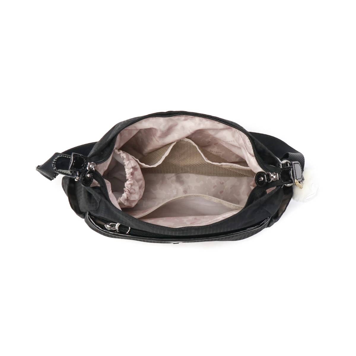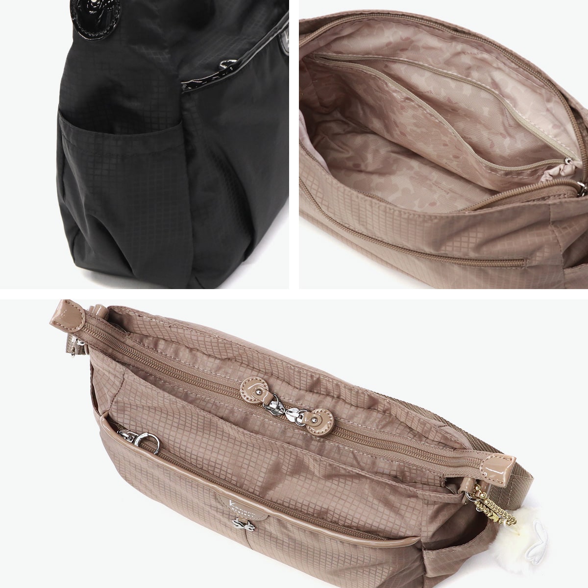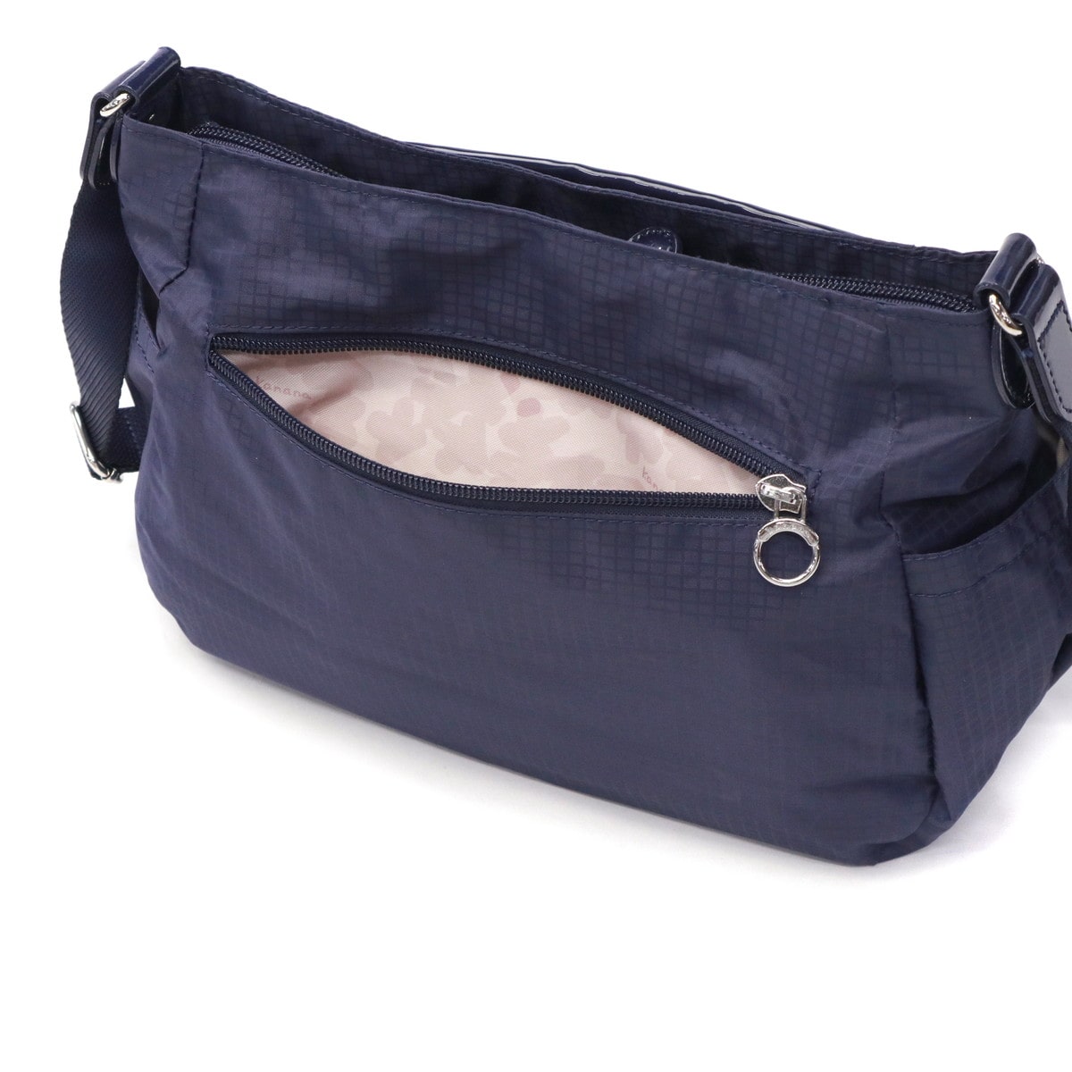 スタイリングのポイントにもなる少し丸みを帯びた可愛らしいデザインと、デイリーからトラベルまで幅広く活躍する機能性を兼ね備えた『シェリ』シリーズ。こちらは6L容量のショルダーバッグです。長財布やスマホなどの身の回りのものを余裕をもって収納できるサイズ感です。