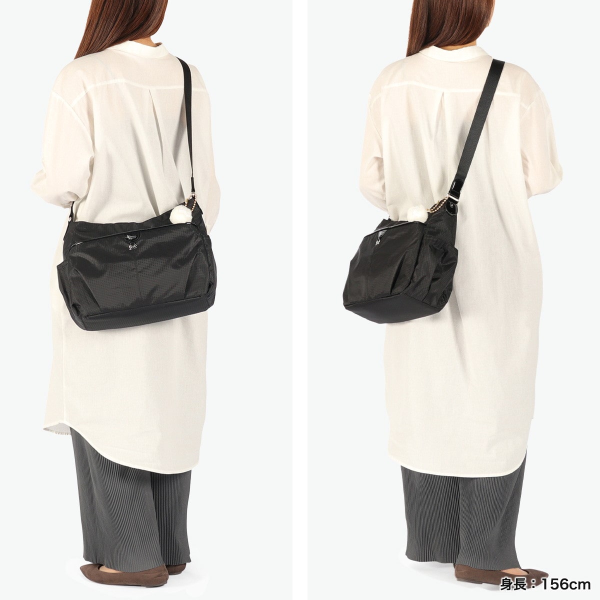 スタイリングのポイントにもなる少し丸みを帯びた可愛らしいデザインと、デイリーからトラベルまで幅広く活躍する機能性を兼ね備えた『シェリ』シリーズ。こちらは8L容量のショルダーバッグです。長財布やスマホなどの身の回り品を余裕をもって収納できる大きめサイズで、荷物が多くなりがちな旅行の際にも安心のサイズ感です。