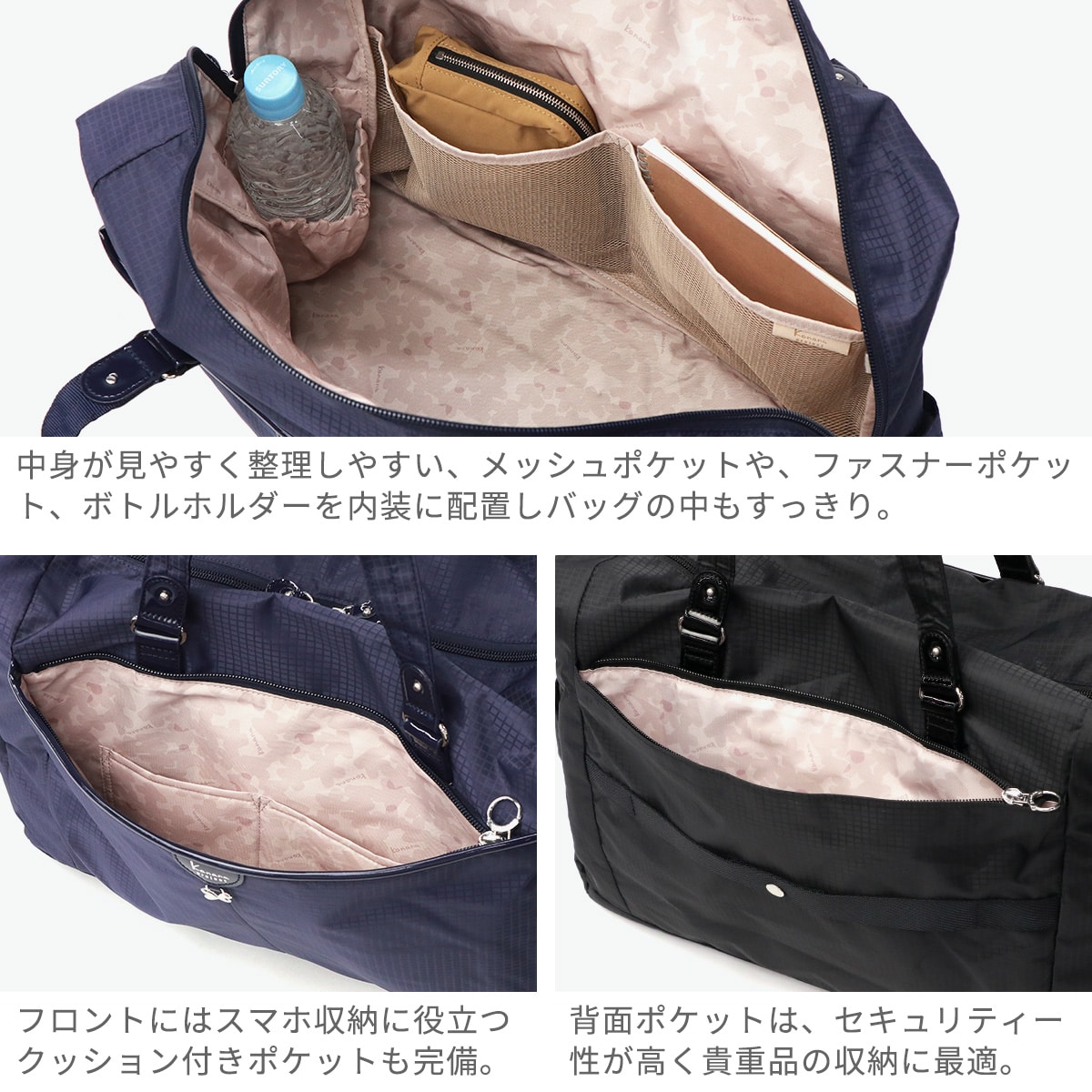 スタイリングのポイントにもなる少し丸みを帯びた可愛らしいデザインと、デイリーからトラベルまで幅広く活躍する機能性を兼ね備えた『シェリ』シリーズのボストンバッグ。小旅行やスポーツなどにぴったりな使いやすいサイズ感と、光沢感のある素材でカジュアルにもきれいめにもマッチするのが嬉しいポイントです。