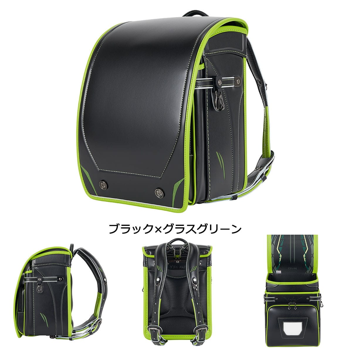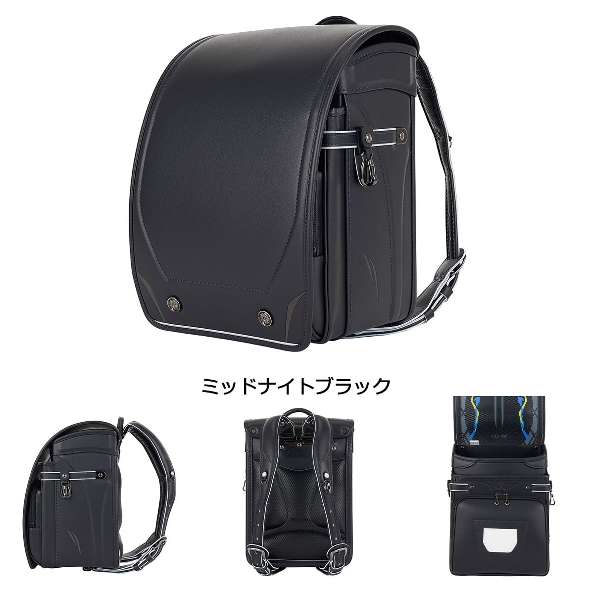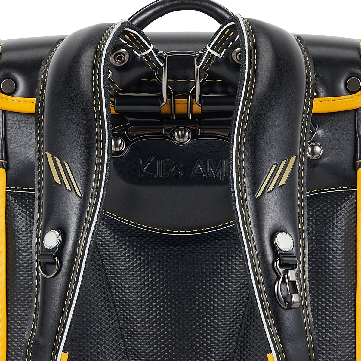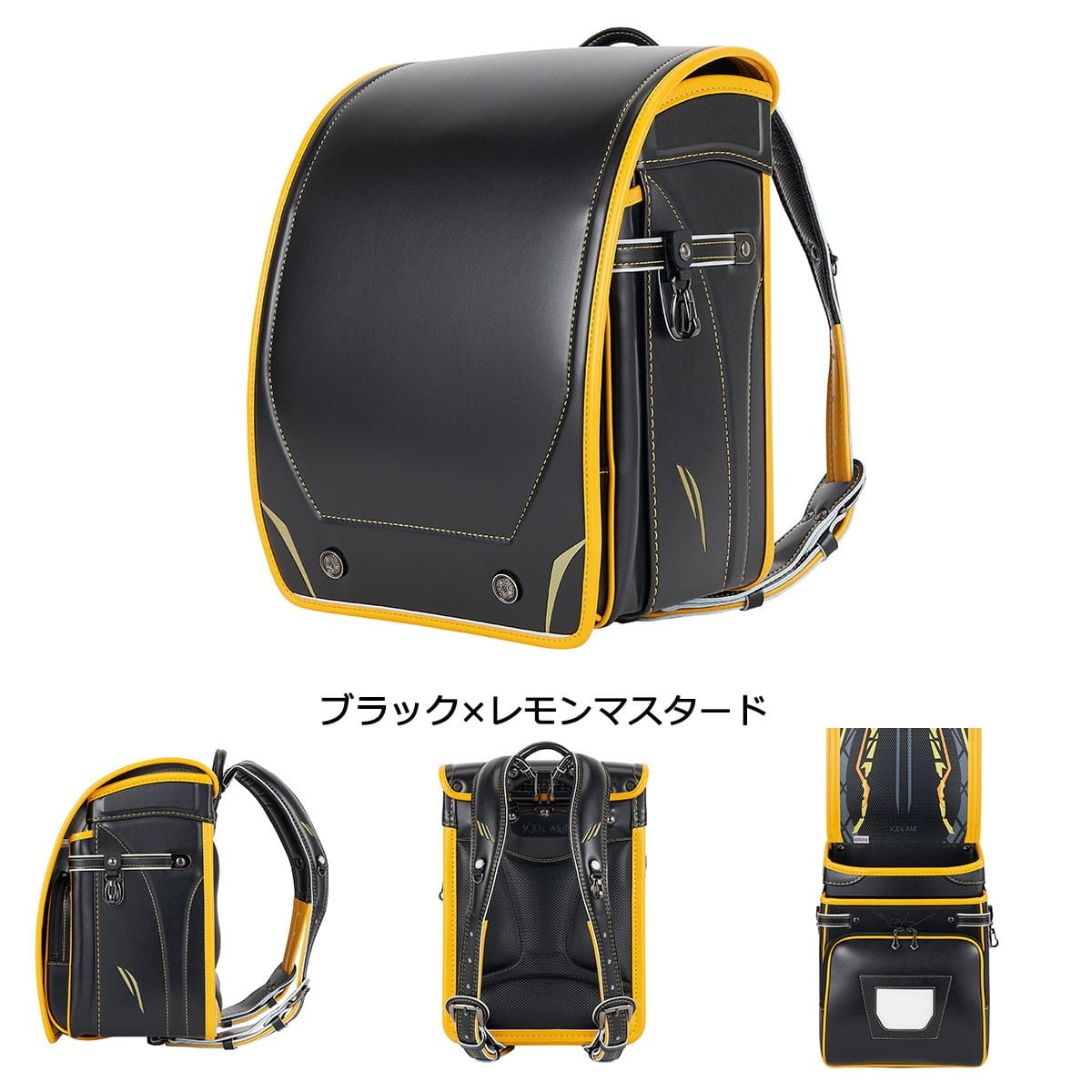 大容量13.5マチのフラットキューブ型ランドセル。体操着や水筒まで収納できるA4対応サイズでありながら、すっきりとした見た目に仕上がっています。さらに背カンや肩ベルトは、重さ・衝撃を軽減する構造に。毎日背負う身体への負担を減らしてくれます。外装デザインは、バイクやライダースーツをモチーフにした色鮮やかで洗練されたアクティブなイメージに。また、内装のビビッカラーやカーボン柄をあしらったアクティブなデザインもポイントです。