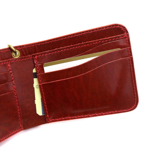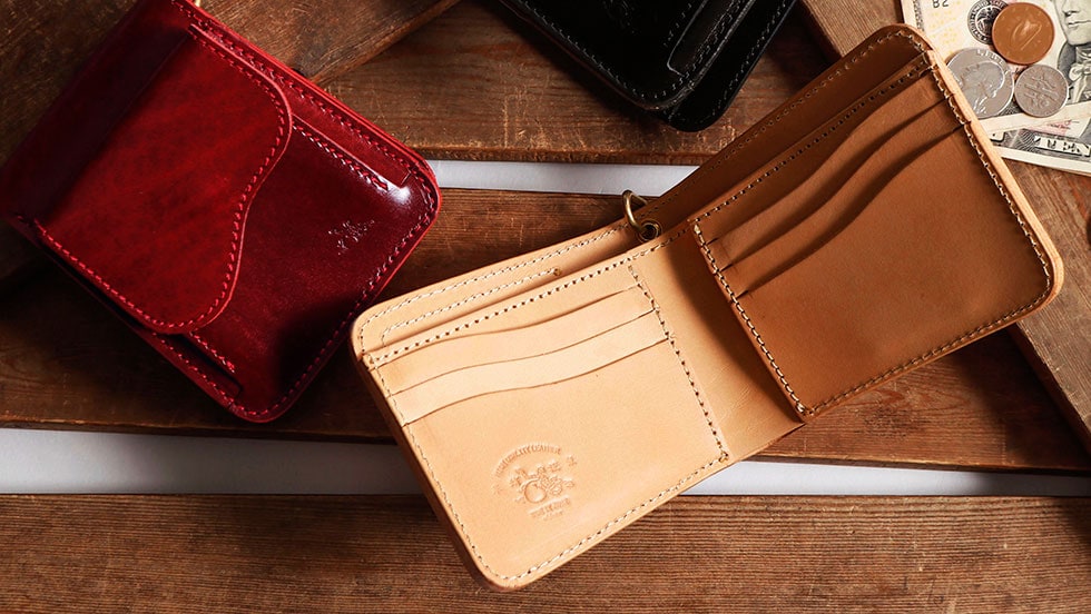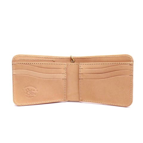 分厚い革と重厚感のあるしっかりしたつくりが魅力的な『革蛸オリジネーター』の二つ折り財布。厚みのあるレザーは、使っていくうちに徐々に柔らかくしなやかになるだけでなく、色濃く変化していく様子も楽しめます。ウォレットチェーンが装着できる真鋳製のリングも備えられ、アメカジ感のある仕上がりとなっています。