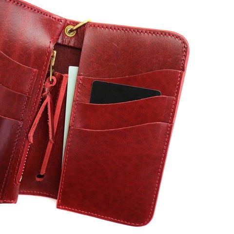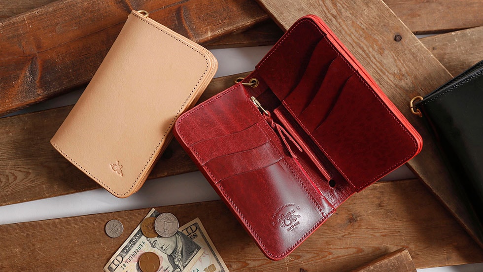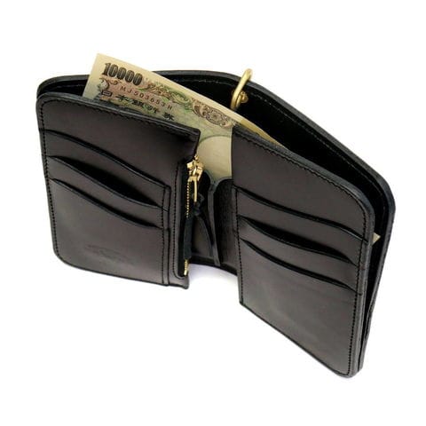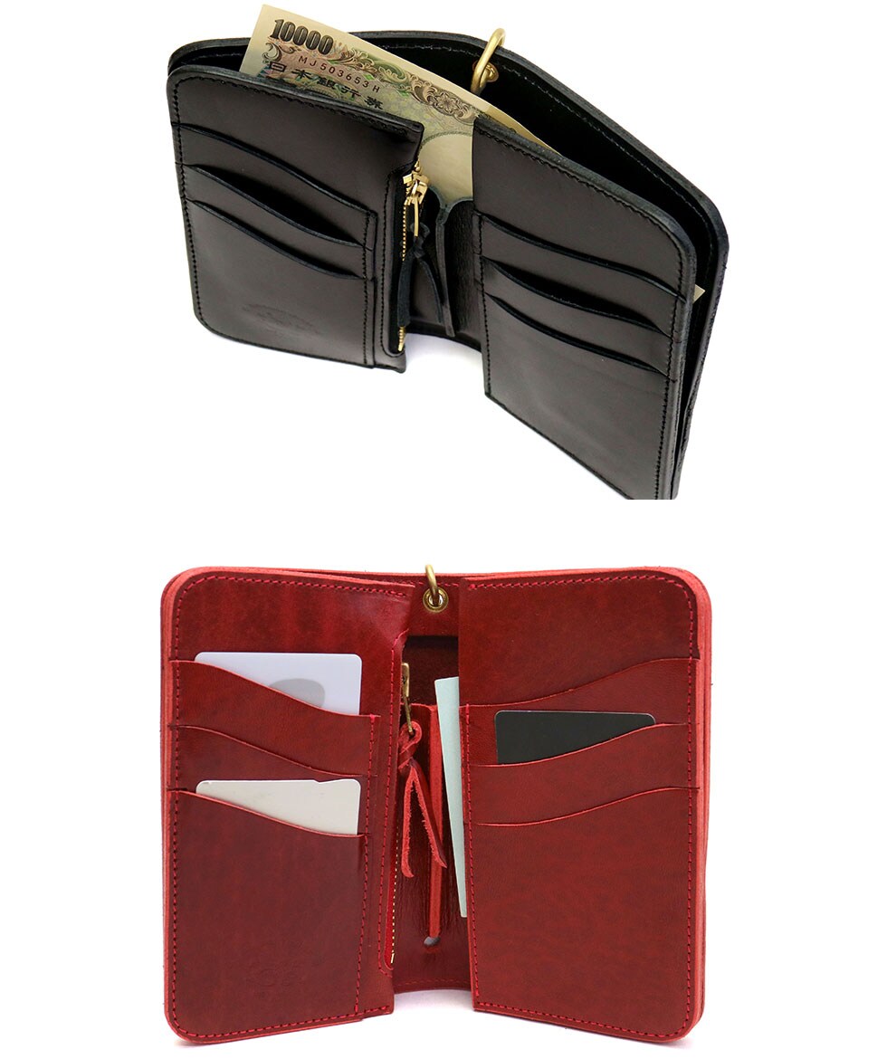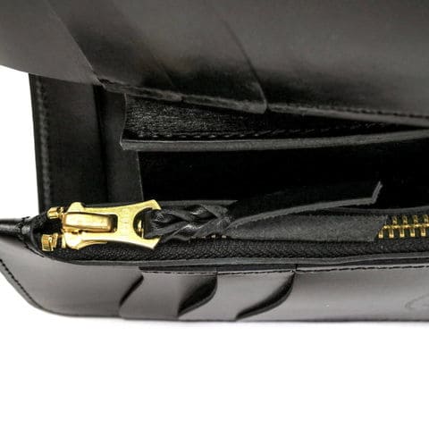 札入れは、お札を出し入れしやすい大きく開くタイプ。小銭入れはファスナー仕様なので、たっぷりしまうことができます。また、領収書の収納に便利なポケットや、計6カ所のカードポケットを備え、お財布の中をきれいに保つことができる収納力が備わっています。