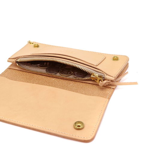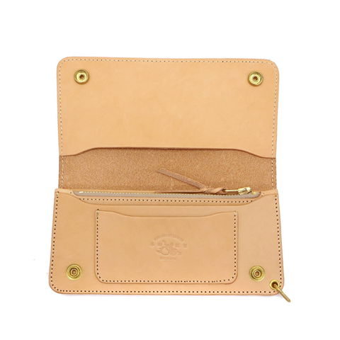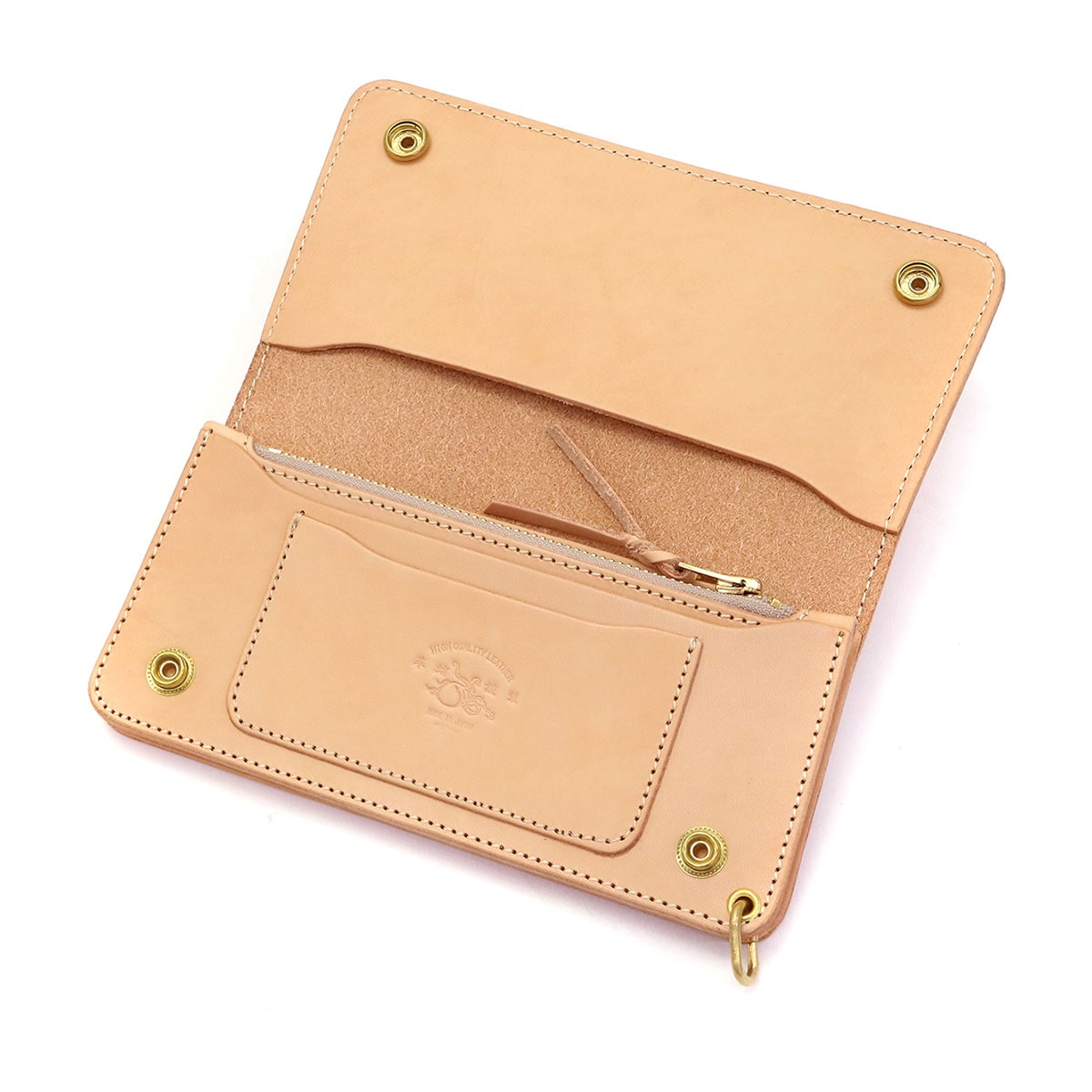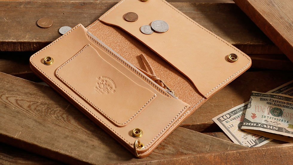 分厚いレザーと重厚感のあるしっかりしたつくりが魅力的な『革蛸オリジネーター』の長財布です。こちらのモデルは、お財布の型を付ける所からスタートしてほしいとの願いで、開いた状態で届くのが最大の魅力。使うほどに柔らかく馴染んでいくレザーをお楽しみ頂けます。