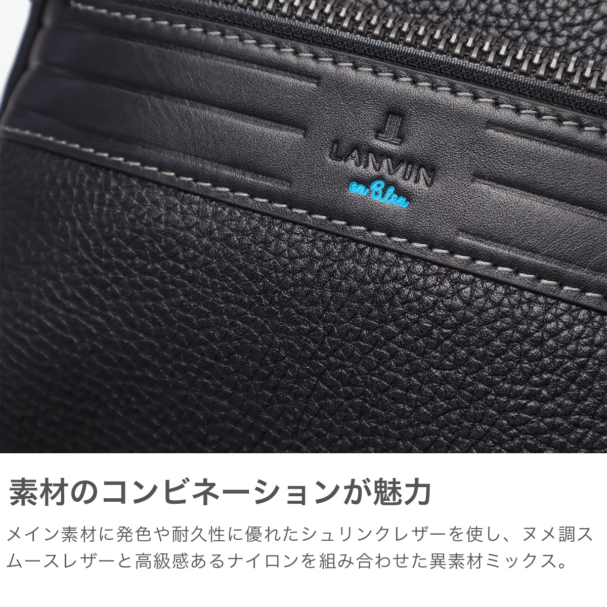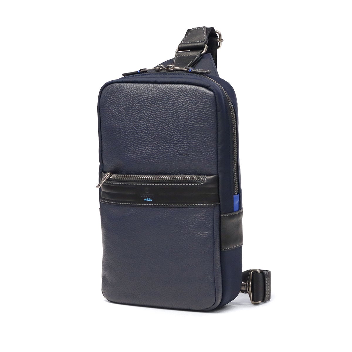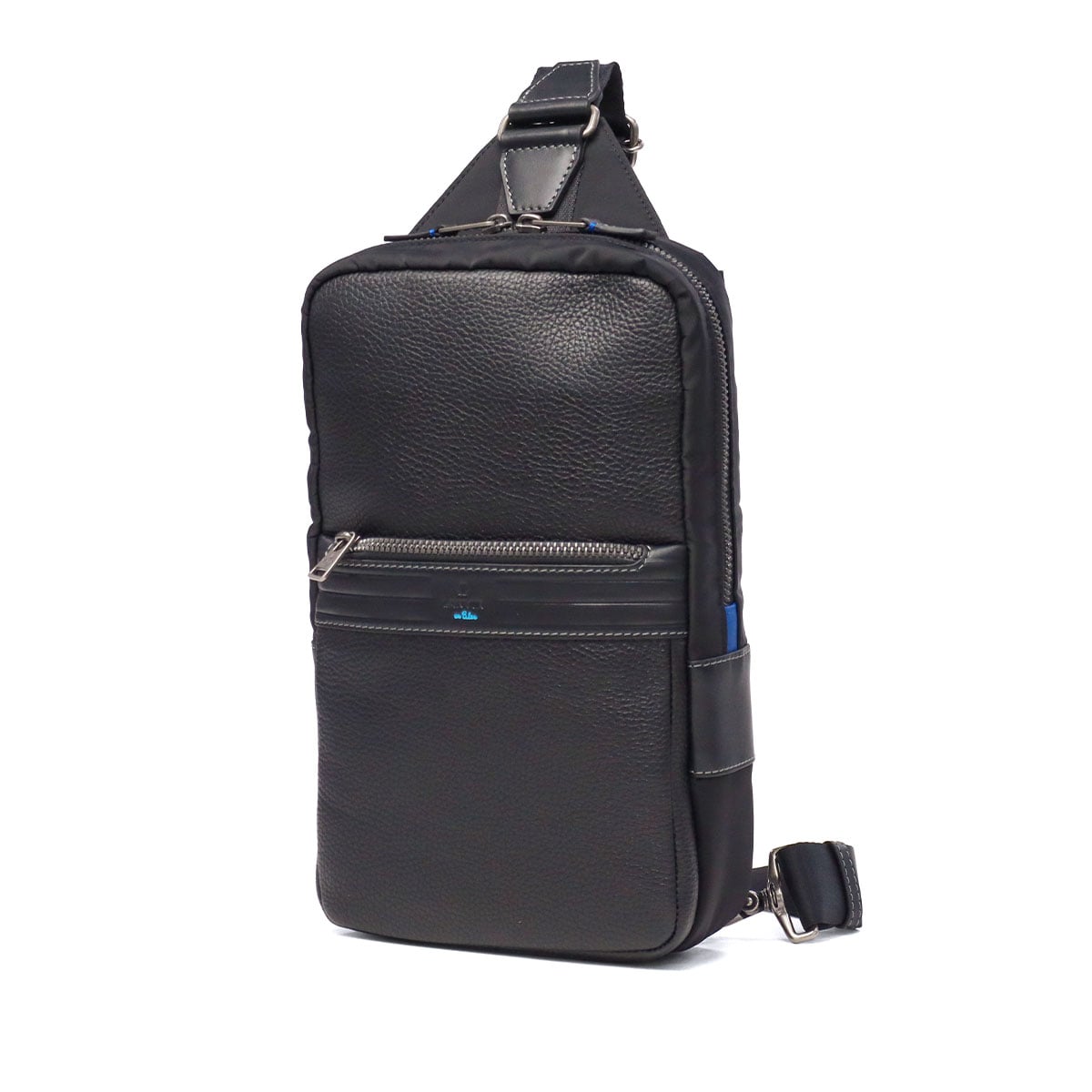 レザーの分量感がポイントの上品なテイストのカジュアルシリーズ『レイト』のボディバッグです。上質なシュリンクレザーに、スムースレザーと高級ナイロンを組み合わせた、ブランドらしい異素材ミックスが魅力です。あえてレザーを引き立て役に、生地を主役にした独自の素材使いも印象的。フロントにはファスナー付きとベタポケットの2層ポケットを備え、デザイン性と機能性を両立させた仕上がりです。