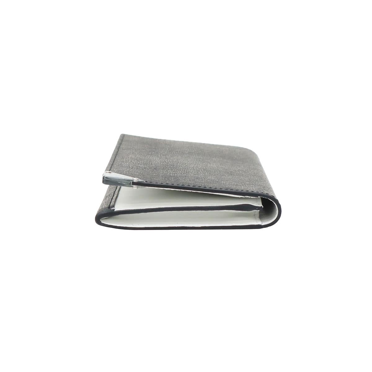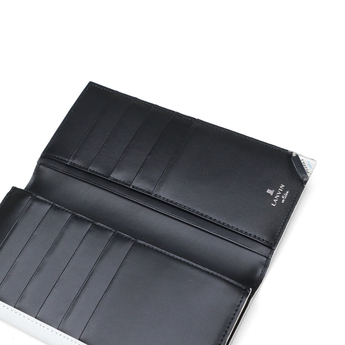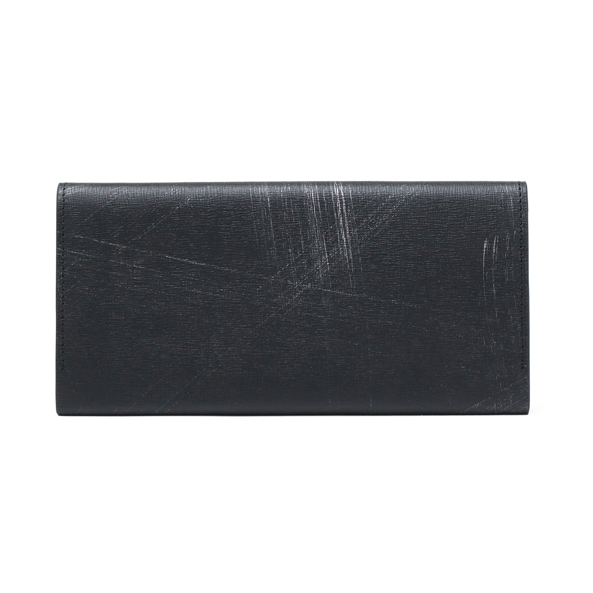 型押し牛革にシルバーの刷毛ムラプリントを施した、エレガントな長財布。シルバープリントと角に施したクリアブローチは、光を通したり反射したりと、ダウンライトや太陽の下で映えるデザインに。ブローチの仕様は面を取っているため手触りがよく、樹脂の中にゴム成分を配合することによって割れにくい仕上がりになっているので、安心してお使いいただけます。