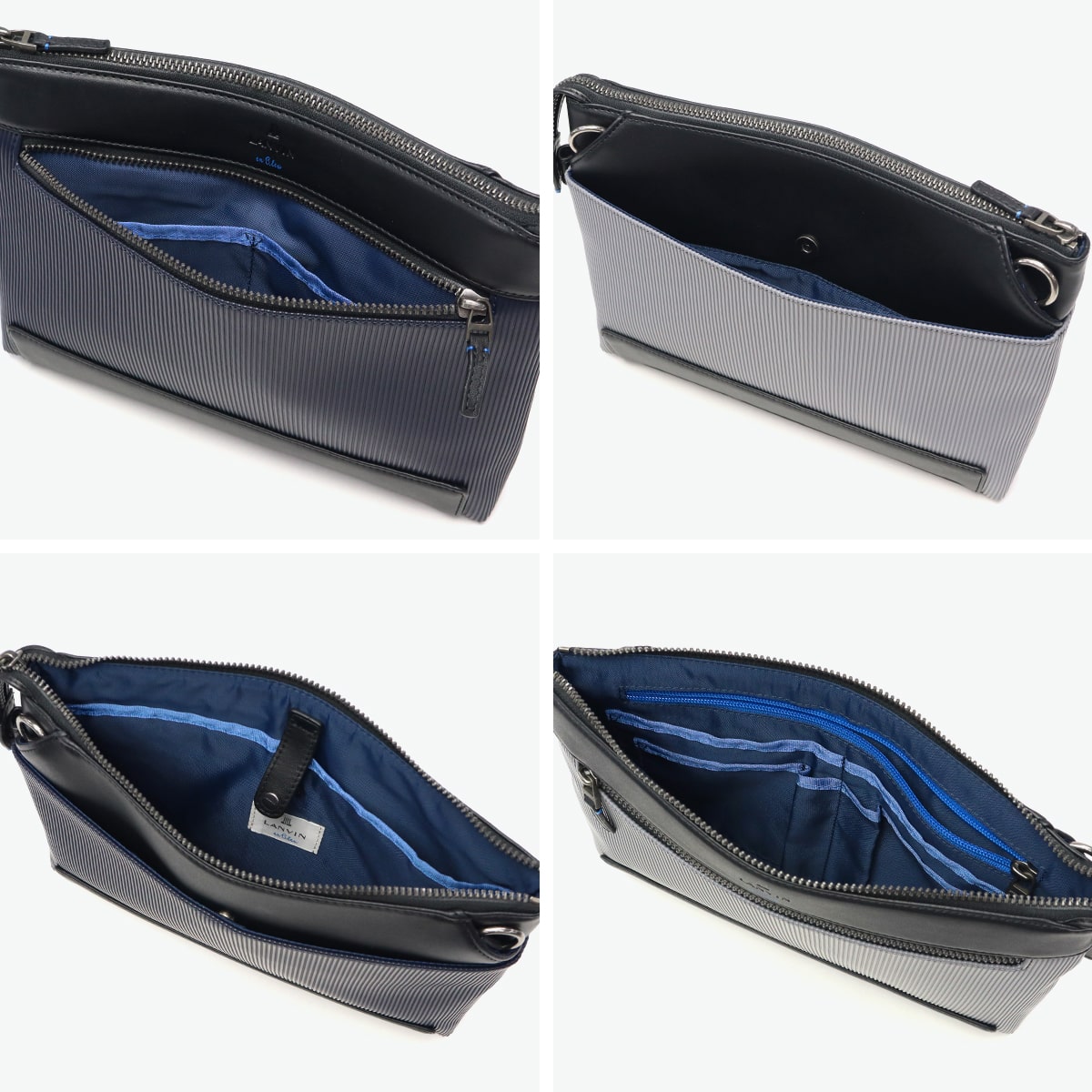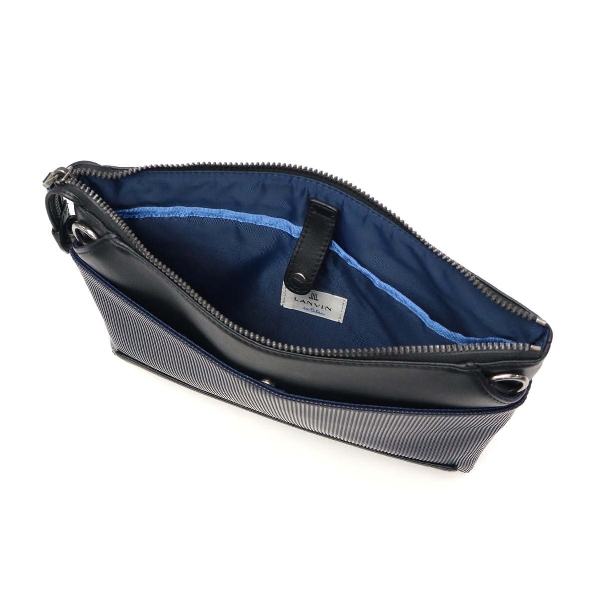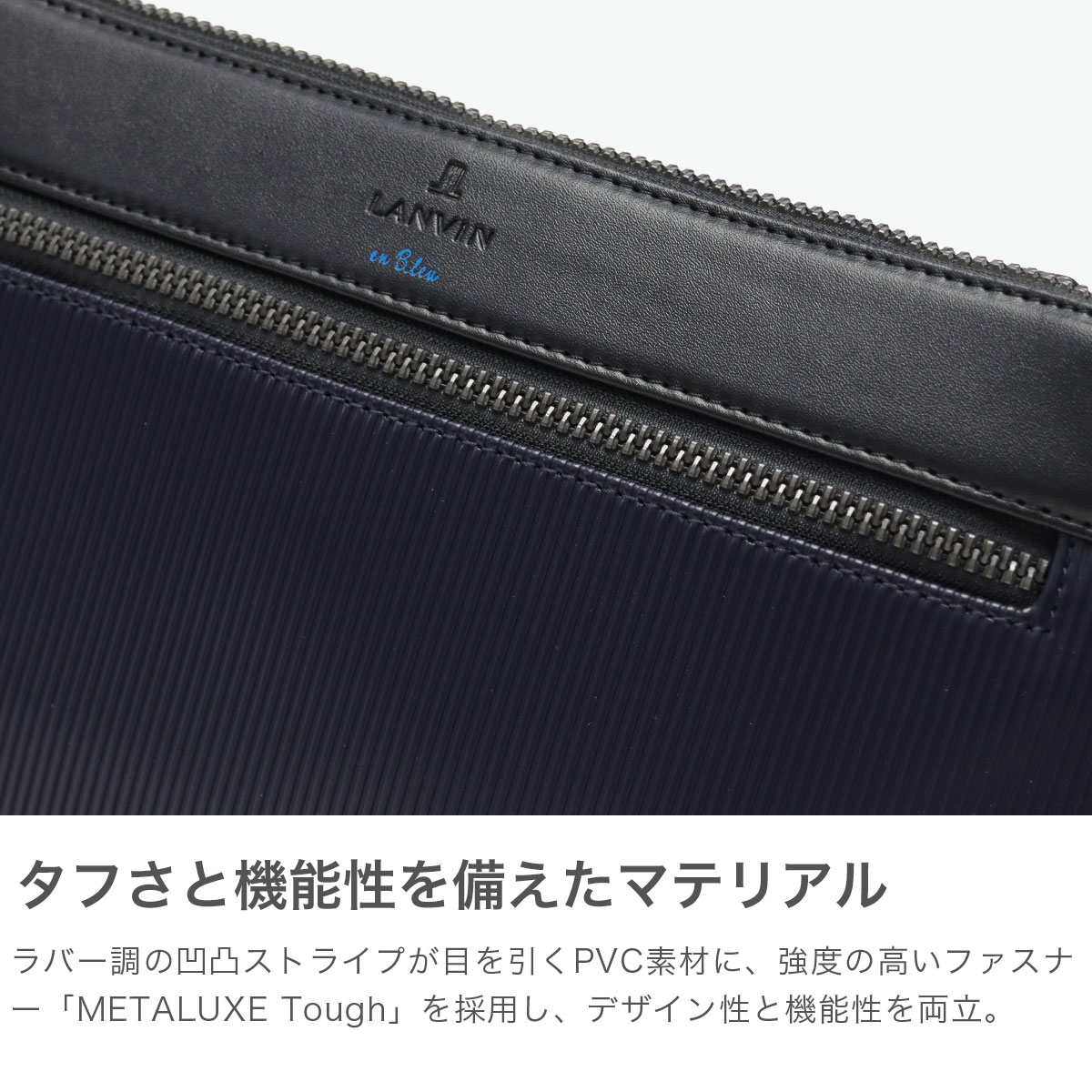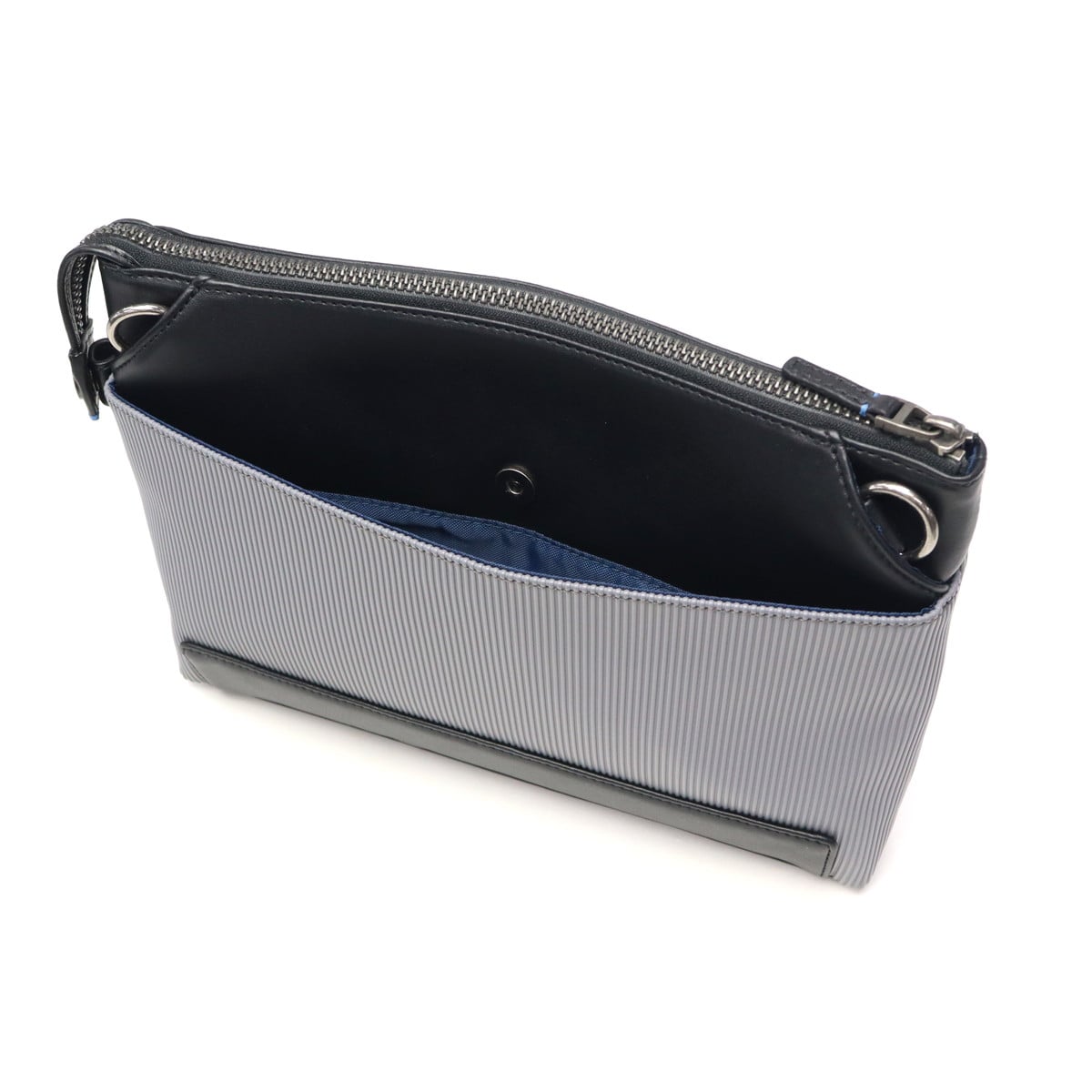 ラバー調の凹凸が特徴的なPVC素材を使用した『バンプ』シリーズのクラッチショルダーです。耐水性・耐摩耗性に優れた高強度素材で、機能性とデザイン性を両立。立体感のあるストライプ柄が都会的なビジカジスタイルを引き立てます。内装はブランドらしいネイビー×ブルーの上品なカラーコンビ。クラッチ・ショルダーの2WAY仕様で、シーンに応じた使い分けが可能です。