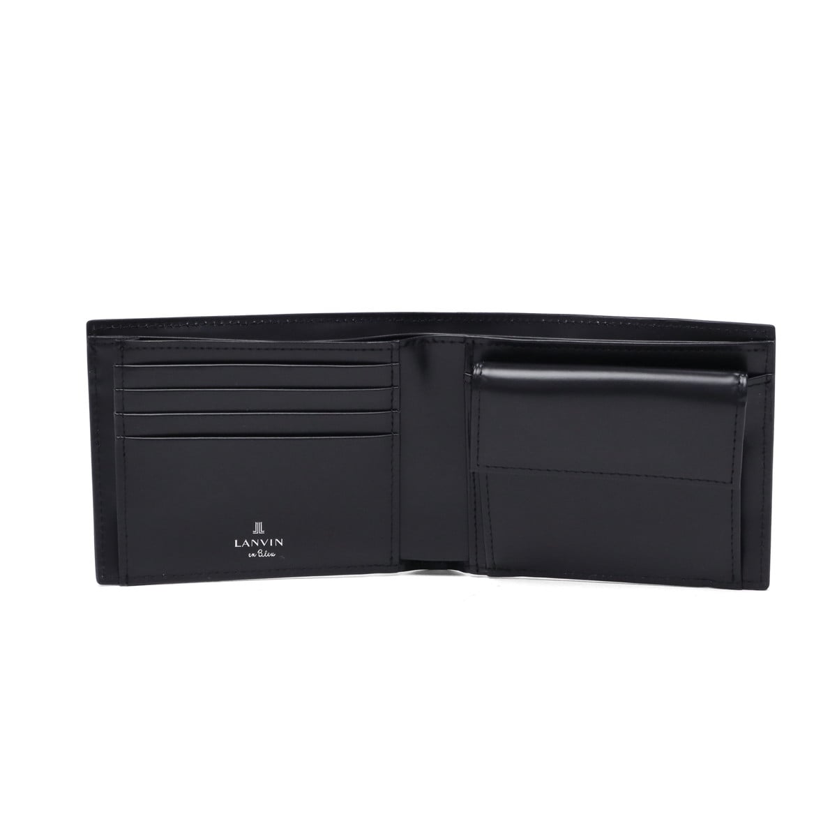 LANVIN en Bleuの楽しさを表現した小物シリーズ『ディアブロ』の二つ折り財布。立体的な型押しロゴと金具プレートと繋がっているように見えるデザインが印象的。ロゴはさらに背面へと回り込み、存在感とデザイン性を際立たせています。素材には細かな型押しが施されているため、傷がつきにくいのも魅力です。