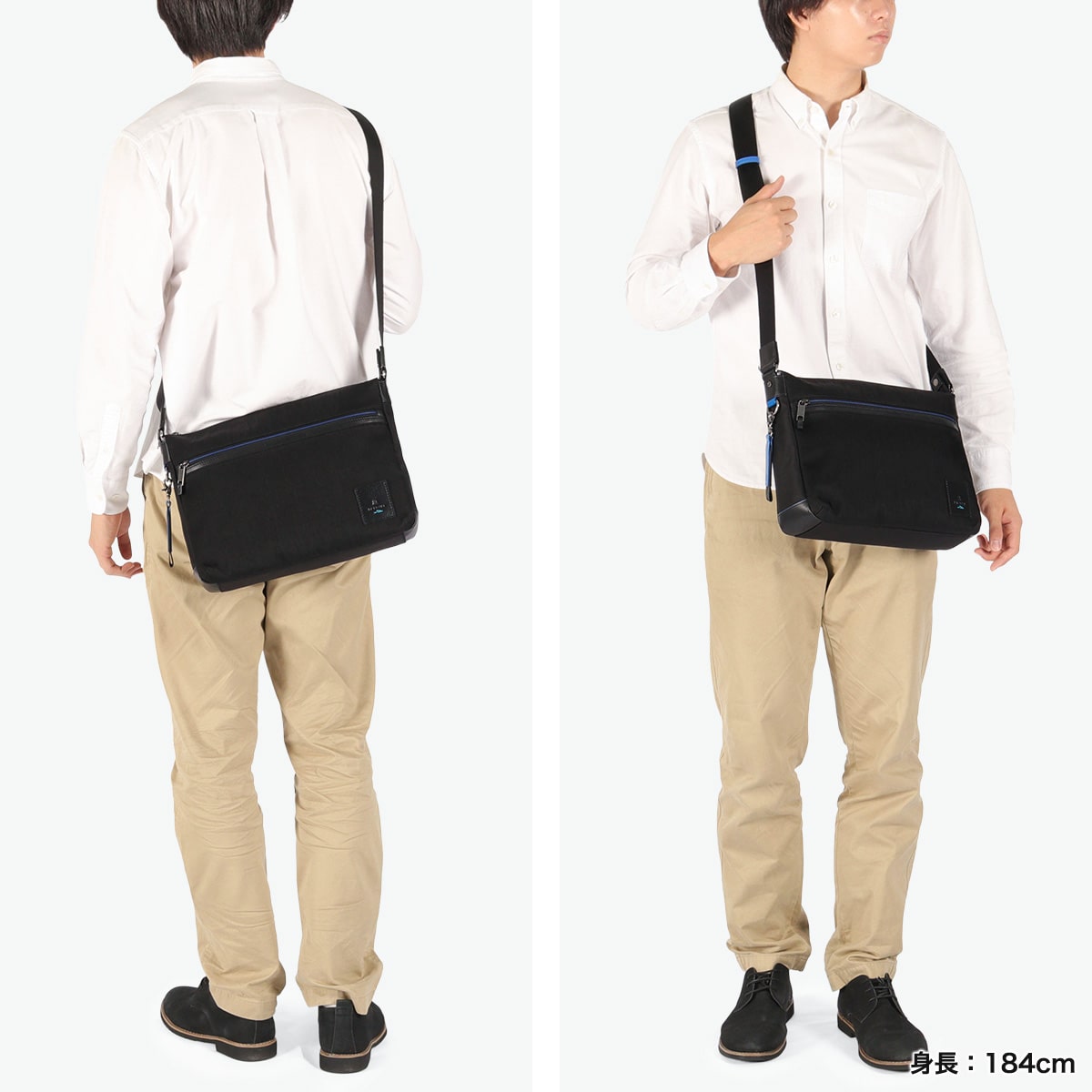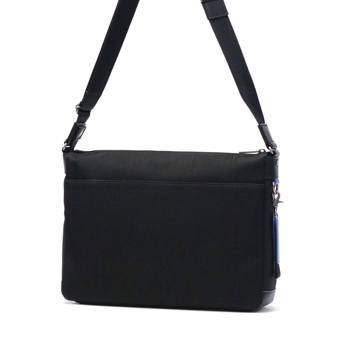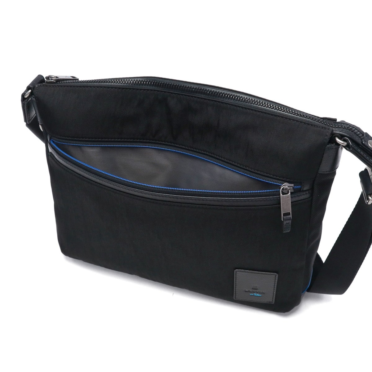 軽やかに持てるナイロンを使用した『リール』シリーズのA4ショルダーバッグです。メイン素材には弱撥水加工を施したシワナイロンツイルを使用し、突然の雨でも安心。随所にブルーのアクセントが効いたブランドらしい仕上がりです。シンプルなデザインで、年齢を問わずスマートにお使いいただけます。