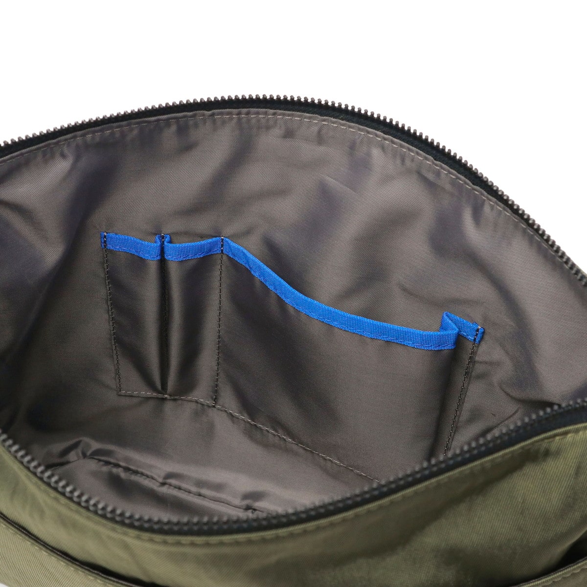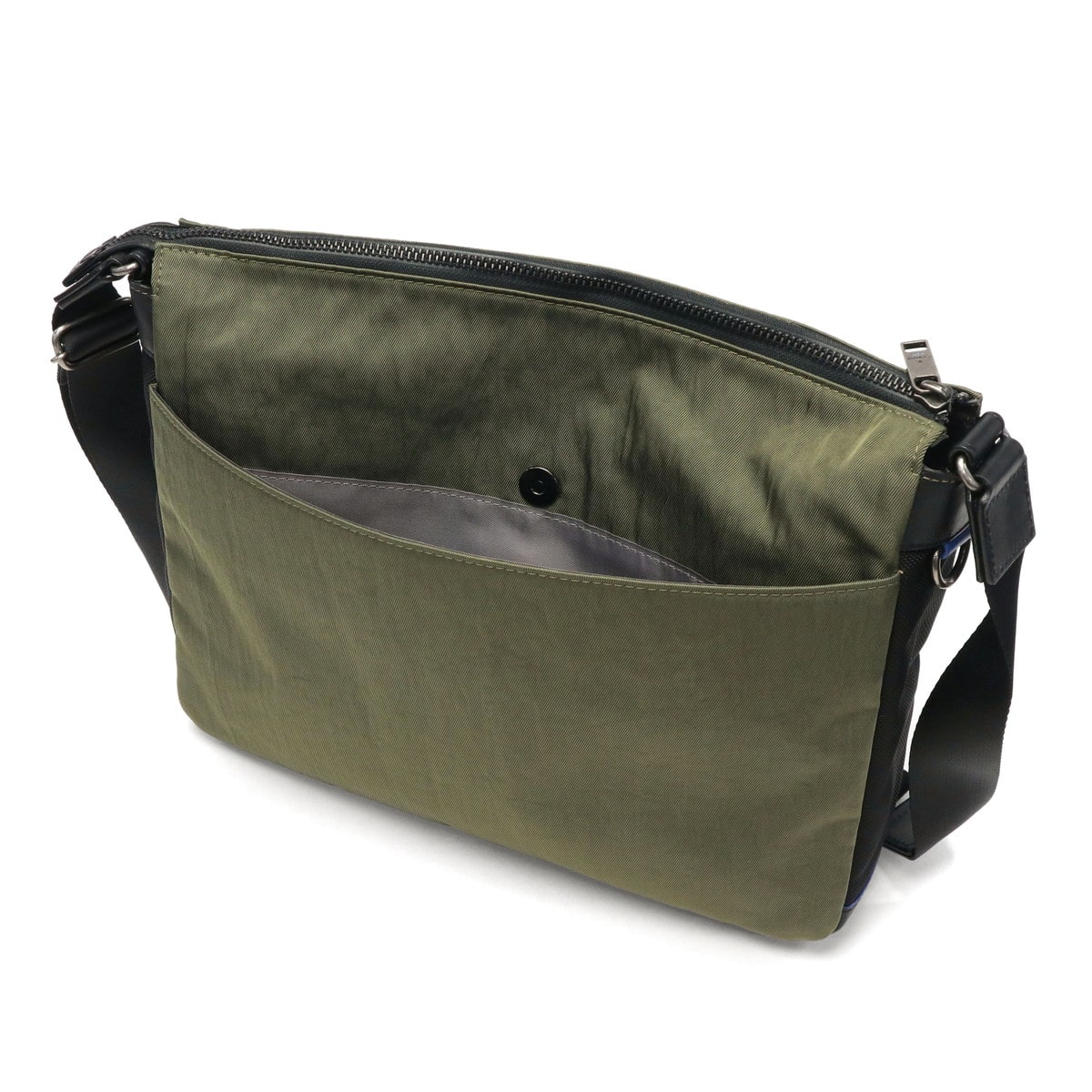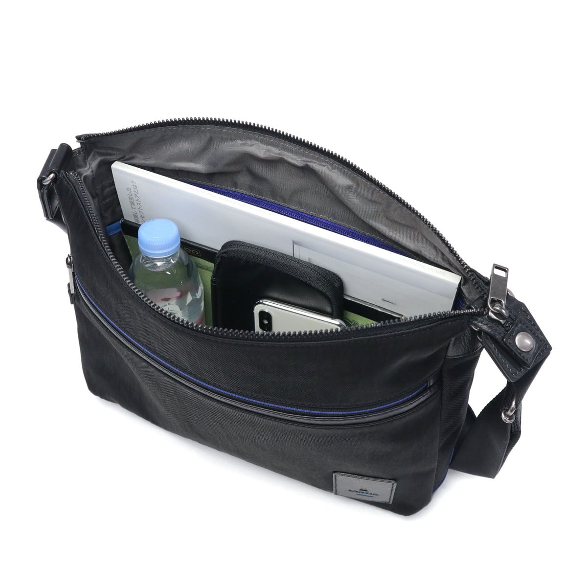 軽やかに持てるナイロンを使用した『リール』シリーズのA4ショルダーバッグです。メイン素材には弱撥水加工を施したシワナイロンツイルを使用し、突然の雨でも安心。随所にブルーのアクセントが効いたブランドらしい仕上がりです。シンプルなデザインで、年齢を問わずスマートにお使いいただけます。