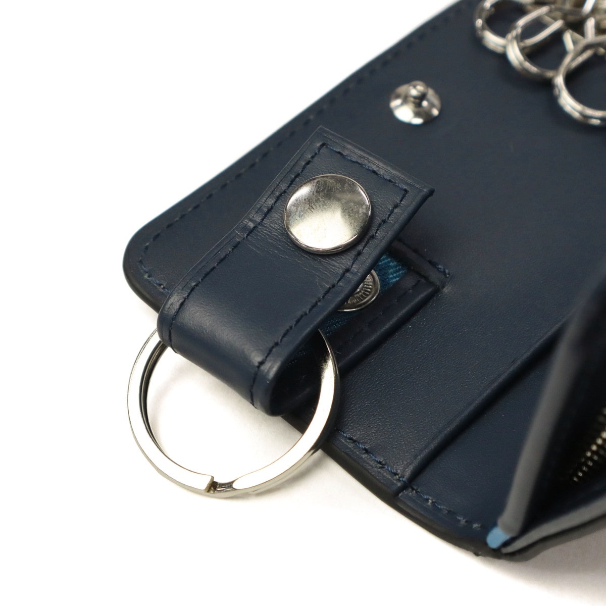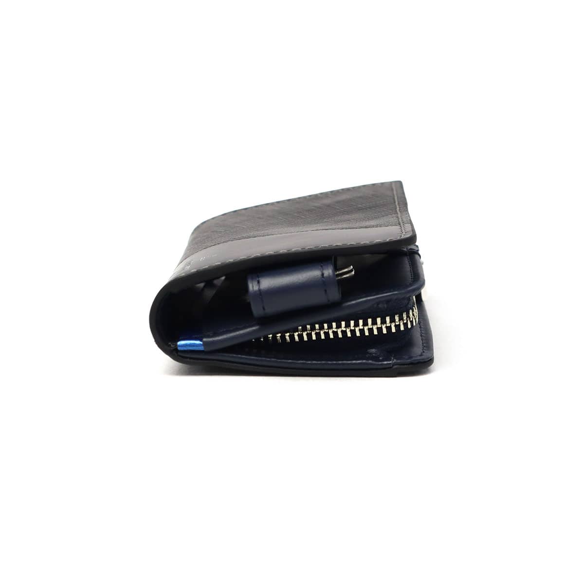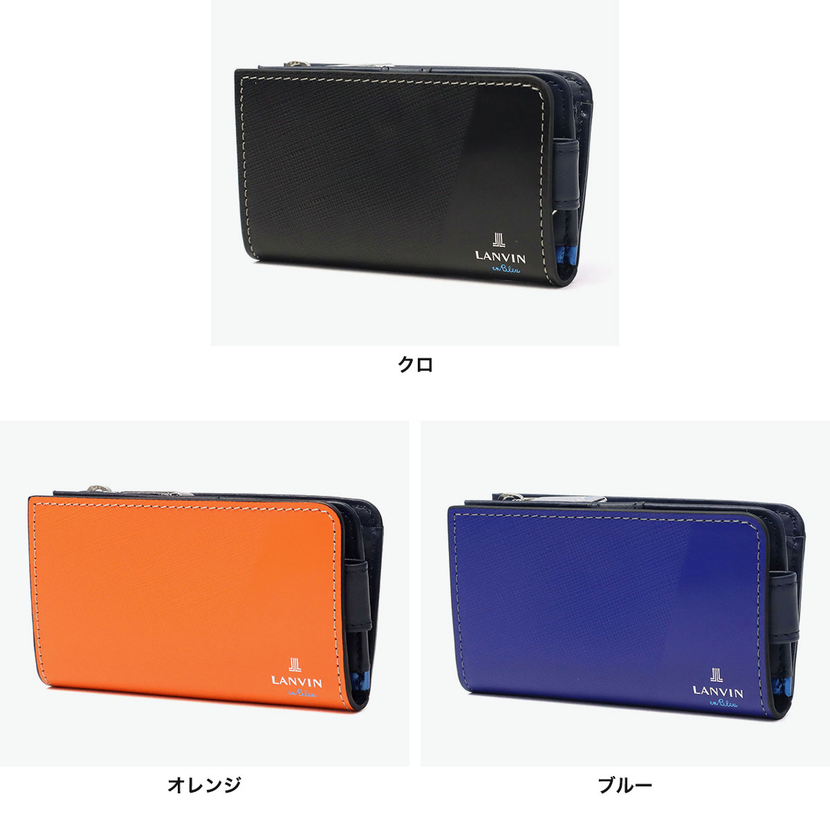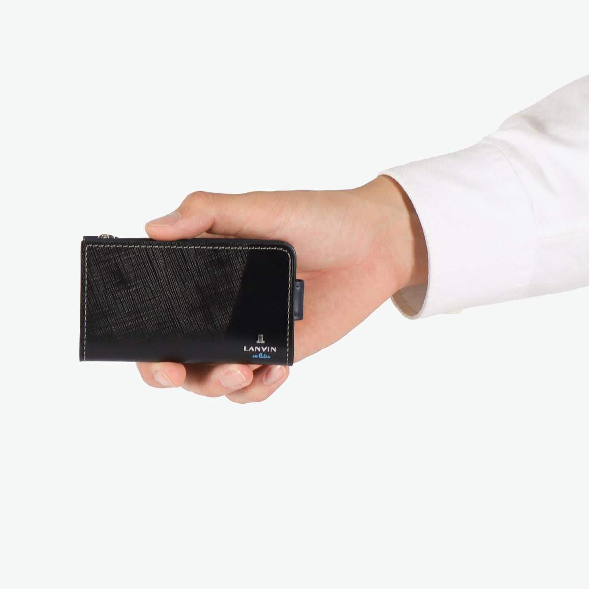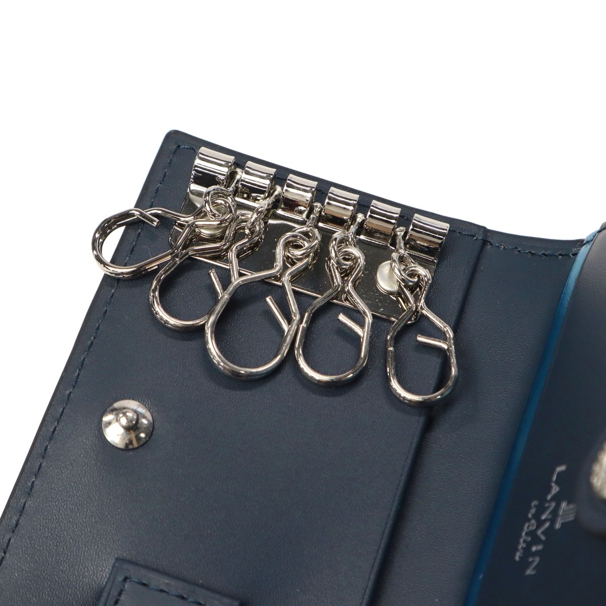 シックで上品な艶感が魅力のガラスレザーに部分的にサフィアーノ調のエンボス加工を施し、アパレル等で多用されるLANVIN en Bleuらしい切り替えを表現した『パーシャル』シリーズのキーケース。光をイメージしたメタリックブルーカラーを内装の一部分に使用することで、スタイリッシュで洗練されたデザインに仕上げています。小銭入れも備え、ちょっとした外出にも対応できる実用性の高いアイテムとなっています。