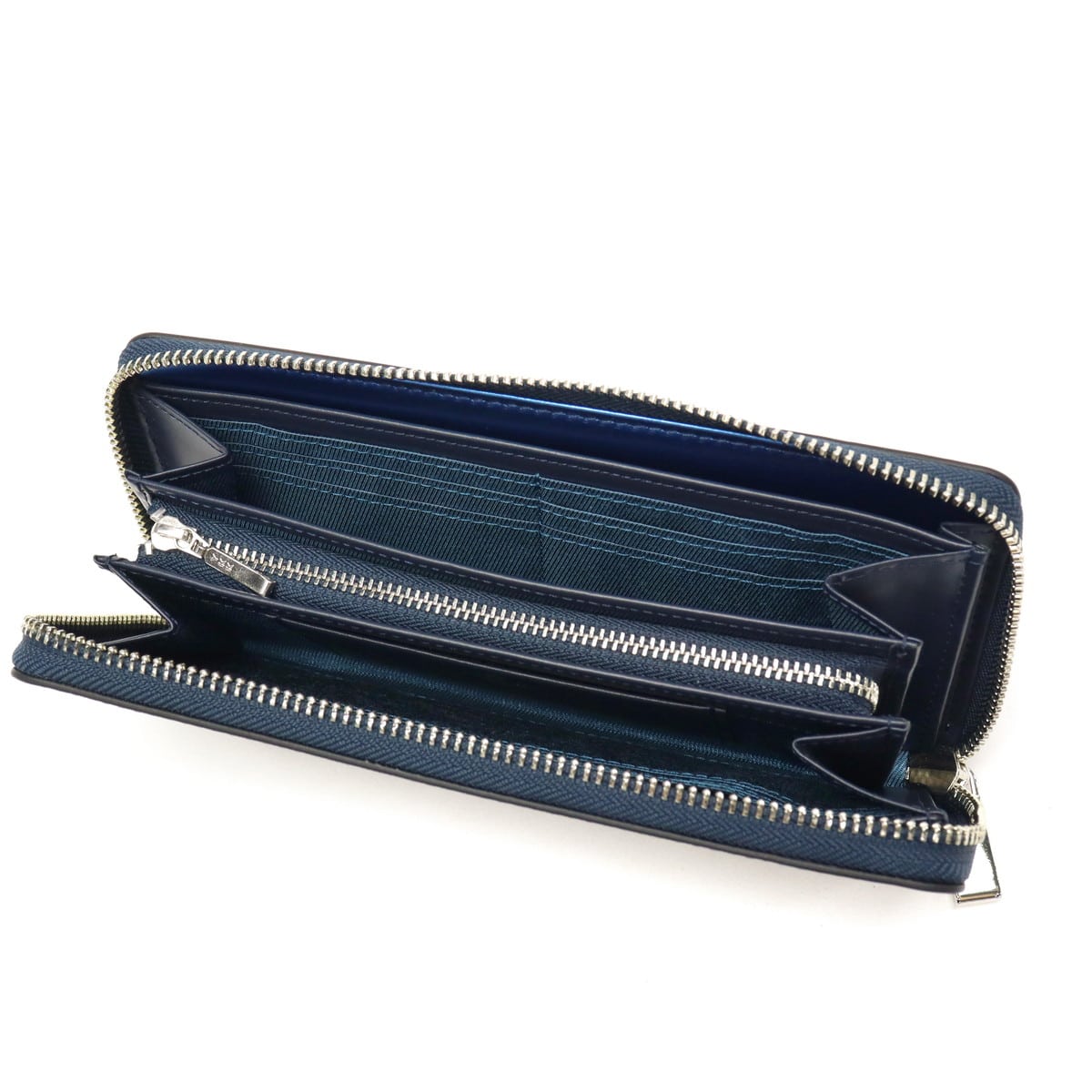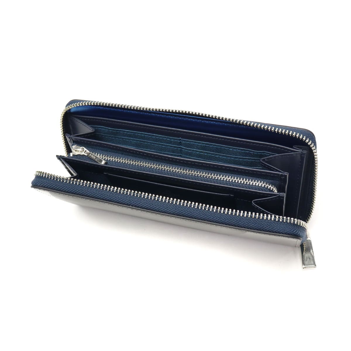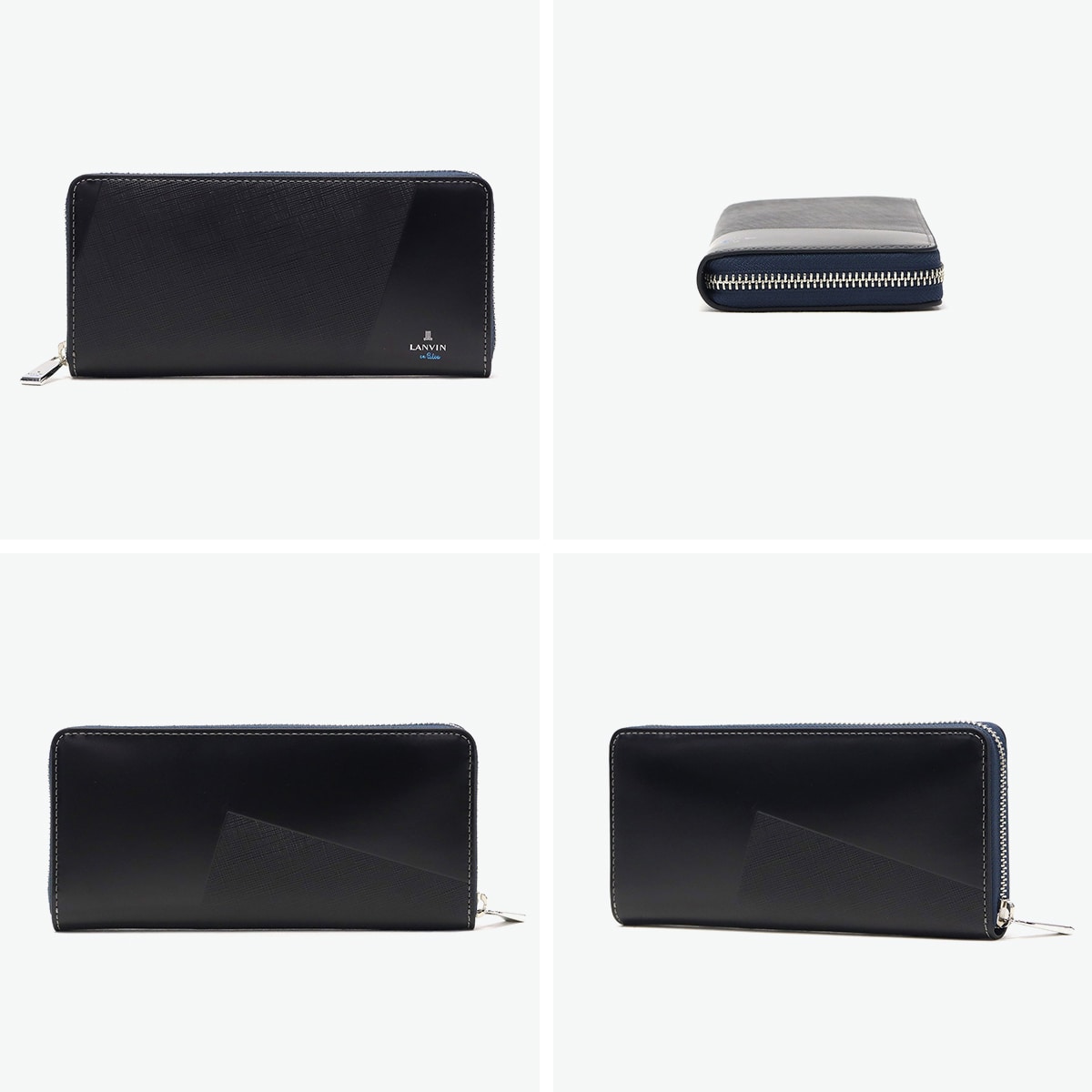 シックで上品な艶感が魅力のガラスレザーに部分的にサフィアーノ調のエンボス加工を施し、アパレル等で多用されるLANVIN en Bleuらしい切り替えを表現した『パーシャル』シリーズのラウンドファスナー長財布です。光をイメージしたメタリックブルーカラーを内装の一部分に使用することで、スタイリッシュで洗練されたデザインに仕上げています。収納力も抜群で、実用性とデザイン性を兼ね備えたアイテムです。