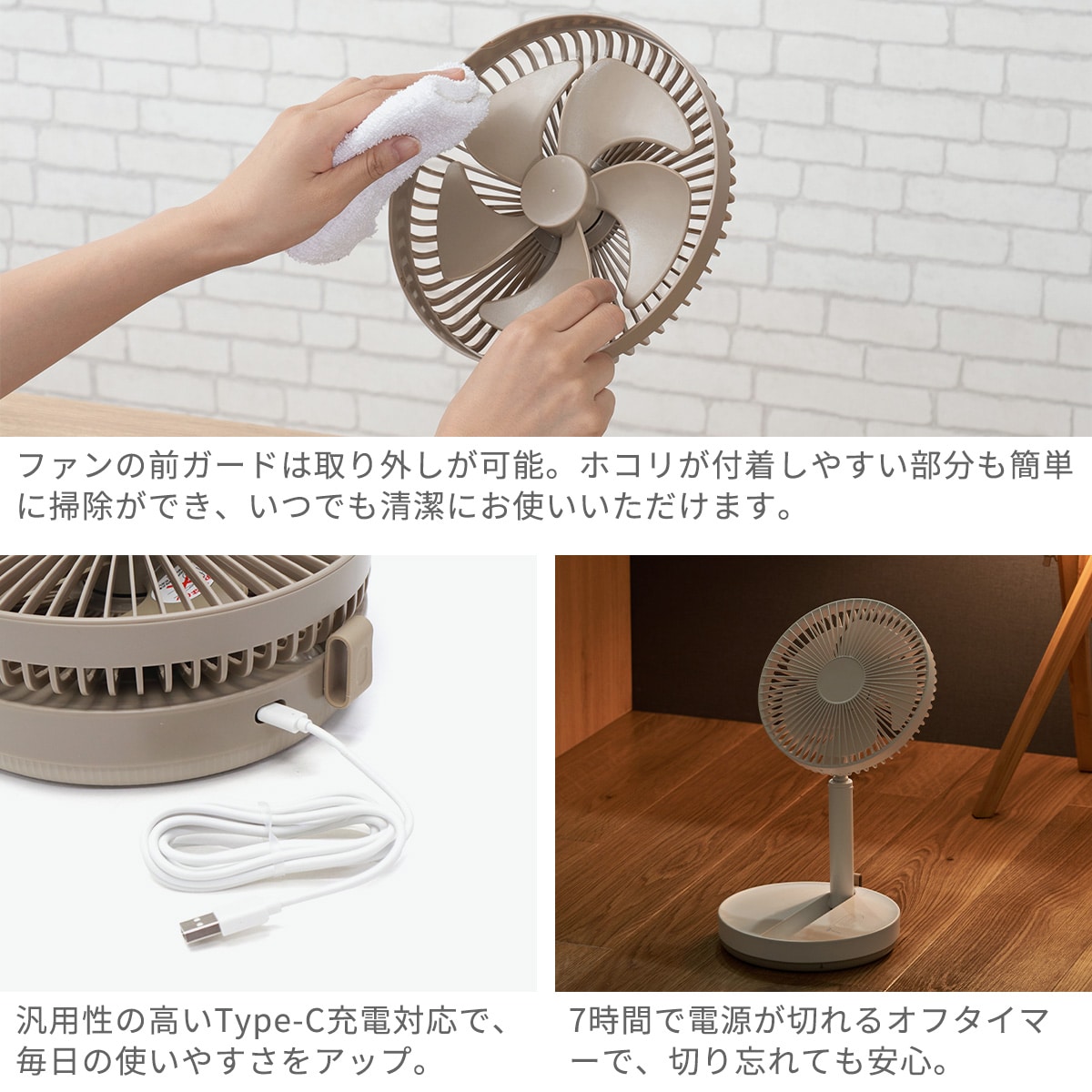 累計販売台数6万台を超える人気のリビングファンが、Type-Cにリニューアルして登場!高さ調節が可能で、デスク用からリビング用まで幅広く活躍します。Type-C対応により、スマホなどと充電コードを共用できるのも嬉しいポイント◎それでいて、一般的な扇風機に引けを取らない高機能を持ち合わせた、使いやすさ抜群の一台です。