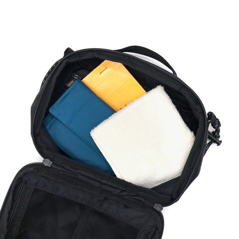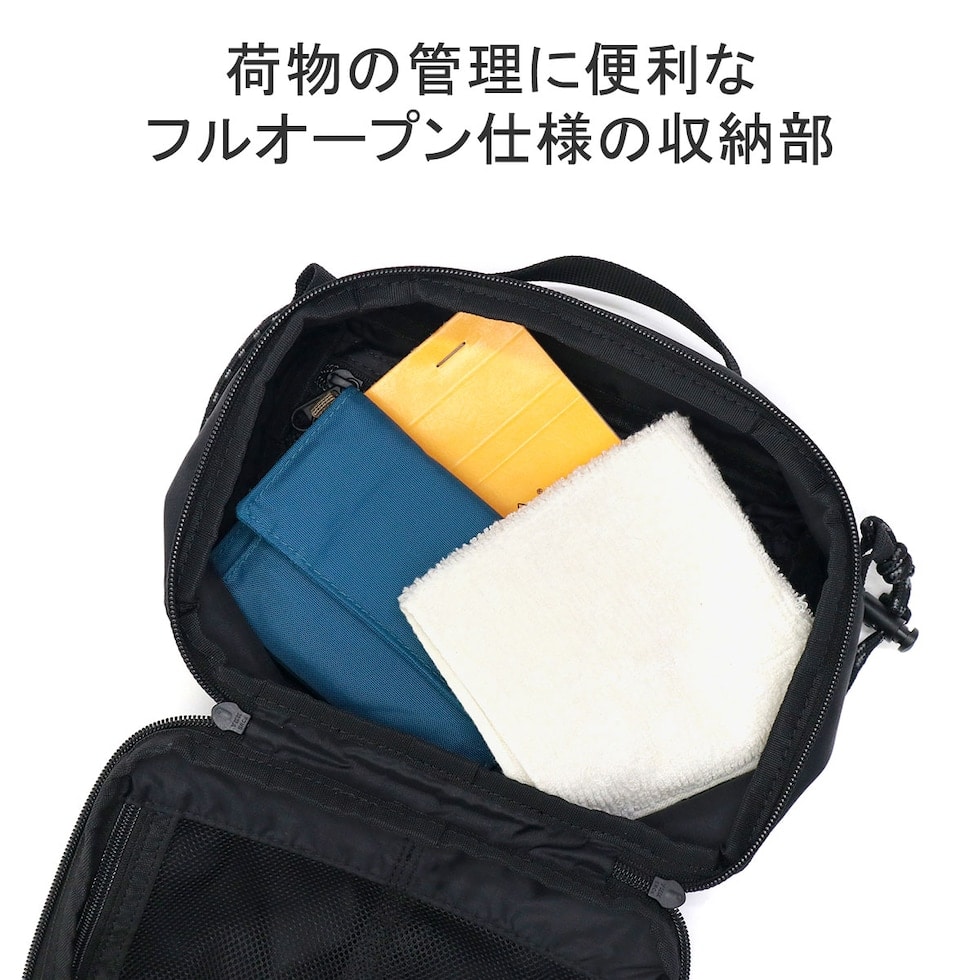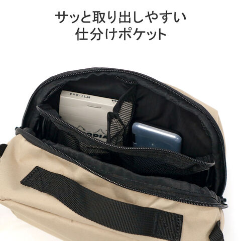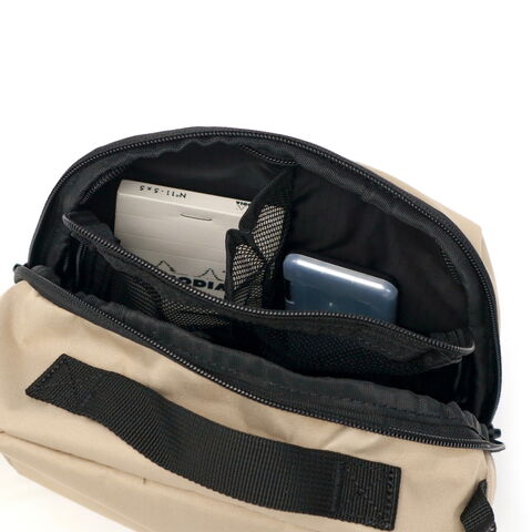 耐水性・耐久性に優れ、軽量かつしなやかな風合いのCORDURA生地を採用したショルダーバッグ。ポーチとしても使え、内部には片面にファスナー付きメインポケットと、中仕切りのあるダブルスライダーのファスナー付ポケットを配置し、アメニティーグッズやモバイルツールの収納に最適です。