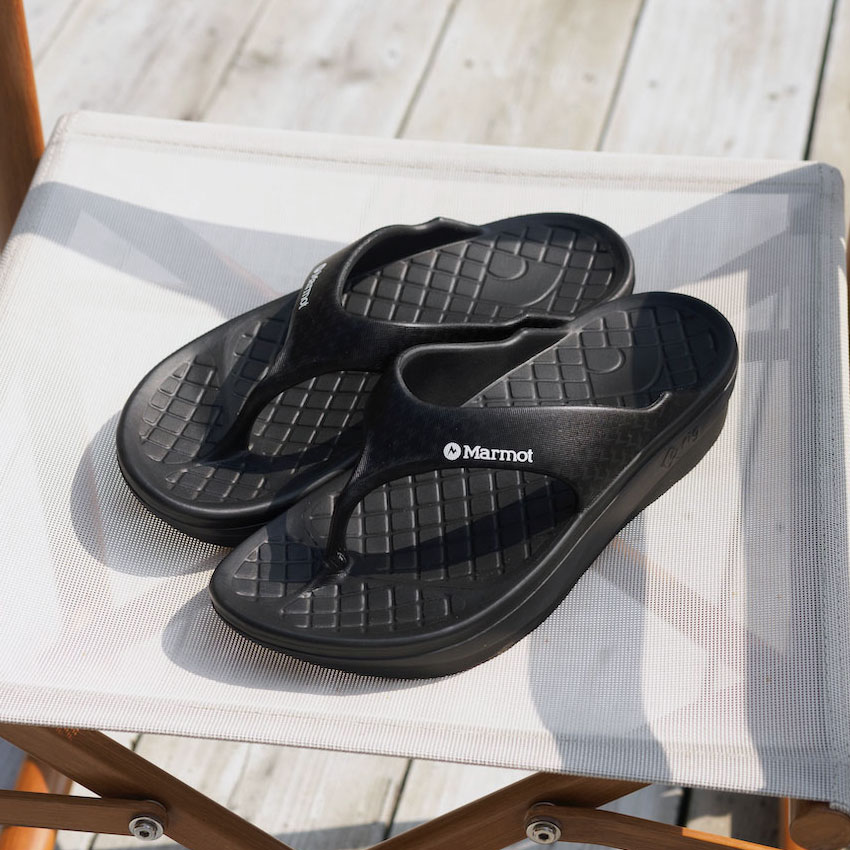 日本初のリカバリーサンダルブランドとして誕生した『rig FOOTWEAR』とMarmotのコラボレーションサンダル。本体は、衝撃吸収性が非常に高く、足腰のストレスを解放して疲労を回復へと促してくれます。また柔らかいクッション性のある厚底ソールにより、足腰への衝撃を軽減する疲れにくい設計が特徴です。