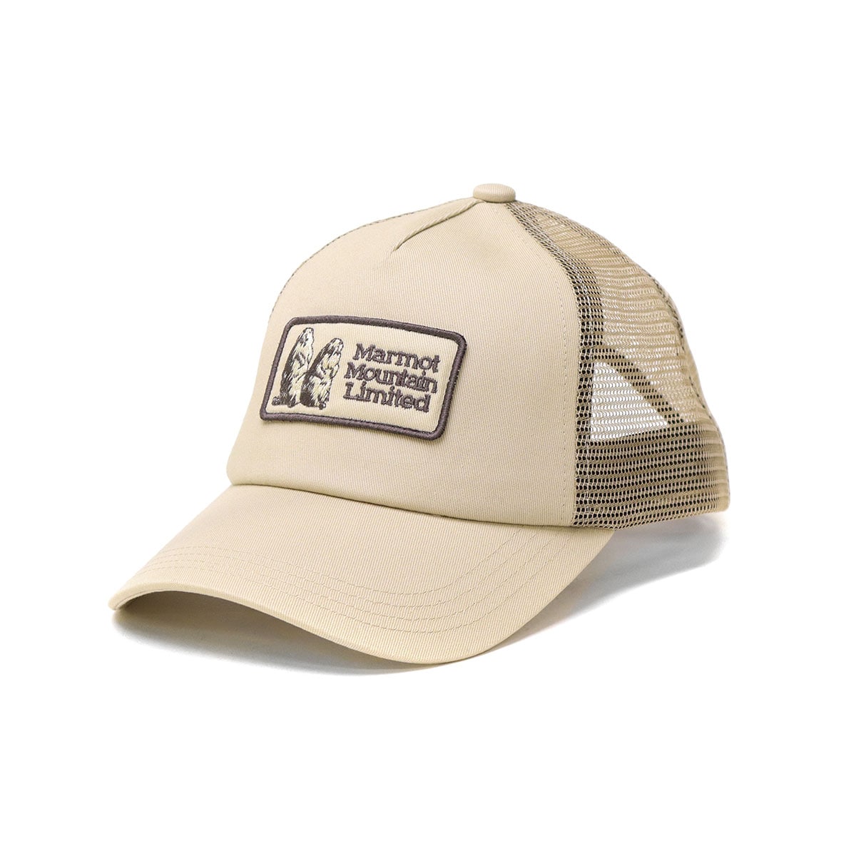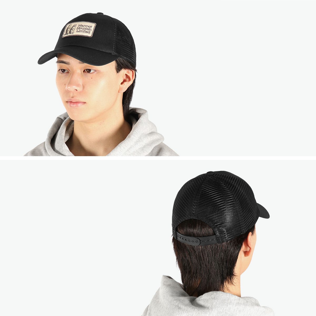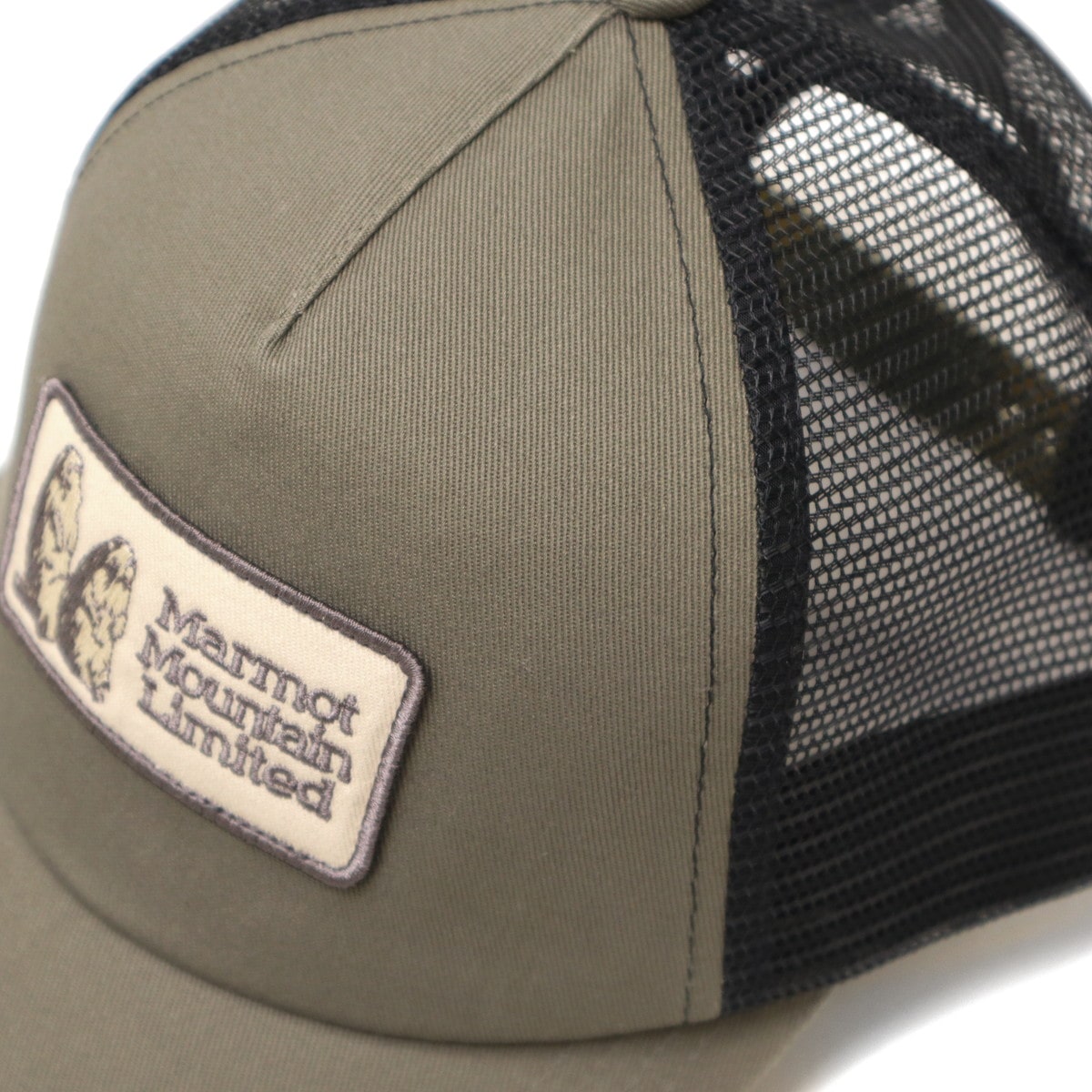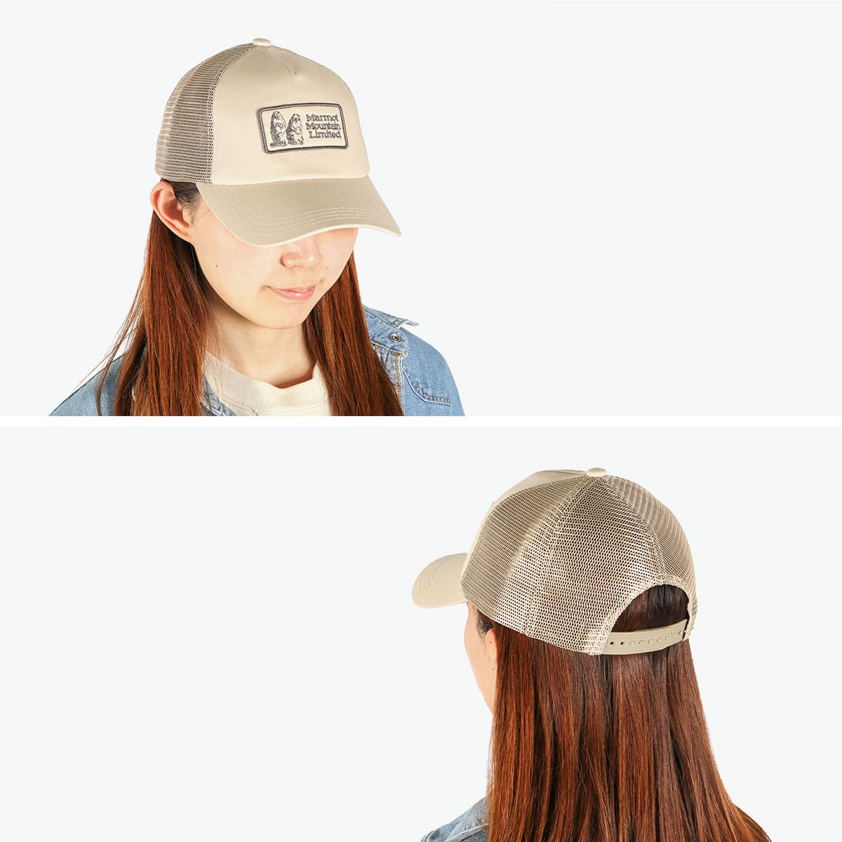 コットンツイル生地を使用したメッシュキャップ。フロントワッペンには、創業当時の社名『Marmot Mountain Works』をモチーフにしたデザインを使用しクラシックな印象に仕上げています。吸水速乾機能を持った汗帯テープ付きで、バックベルトはサイズ調整可能となっています。