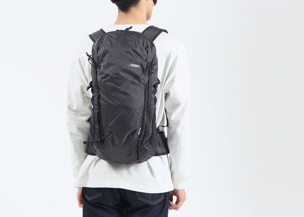 テクニカルなアウトドア活動のために設計された超軽量バックパック。耐久性に優れた210D Robicナイロンに防水性に優れたUTSコーティングを施しています。ハイキングポールやアイスアックス用のギアループ、アイテムが取り付けられるデイジーチェーンなど、冒険に必要な機能を凝縮したデザインが魅力です。
