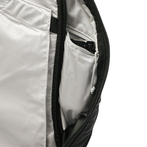 メインルームには開き具合が非対称のクラムシェルファスナーを採用し、バッグの底にある大きなアイテムへのアクセスを容易にします。内装に設けられたハイドレーションスリーブは1~3リットルのリザーバーに対応。給水用のチューブが通せる穴も背面に備わっています。