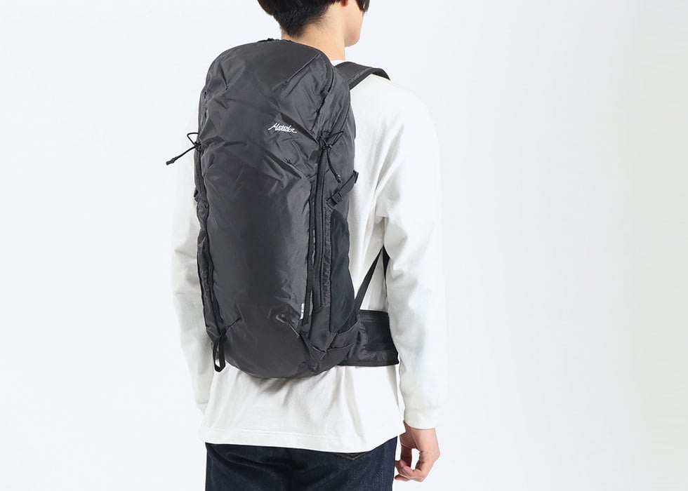 テクニカルなアウトドア活動のために設計された超軽量バックパック。耐久性に優れた210D Robicナイロンに防水性に優れたUTSコーティングを施しています。ハイキングポールやアイスアックス用のギアループ、アイテムが取り付けられるデイジーチェーンなど、冒険に必要な機能を凝縮したデザインが魅力です。