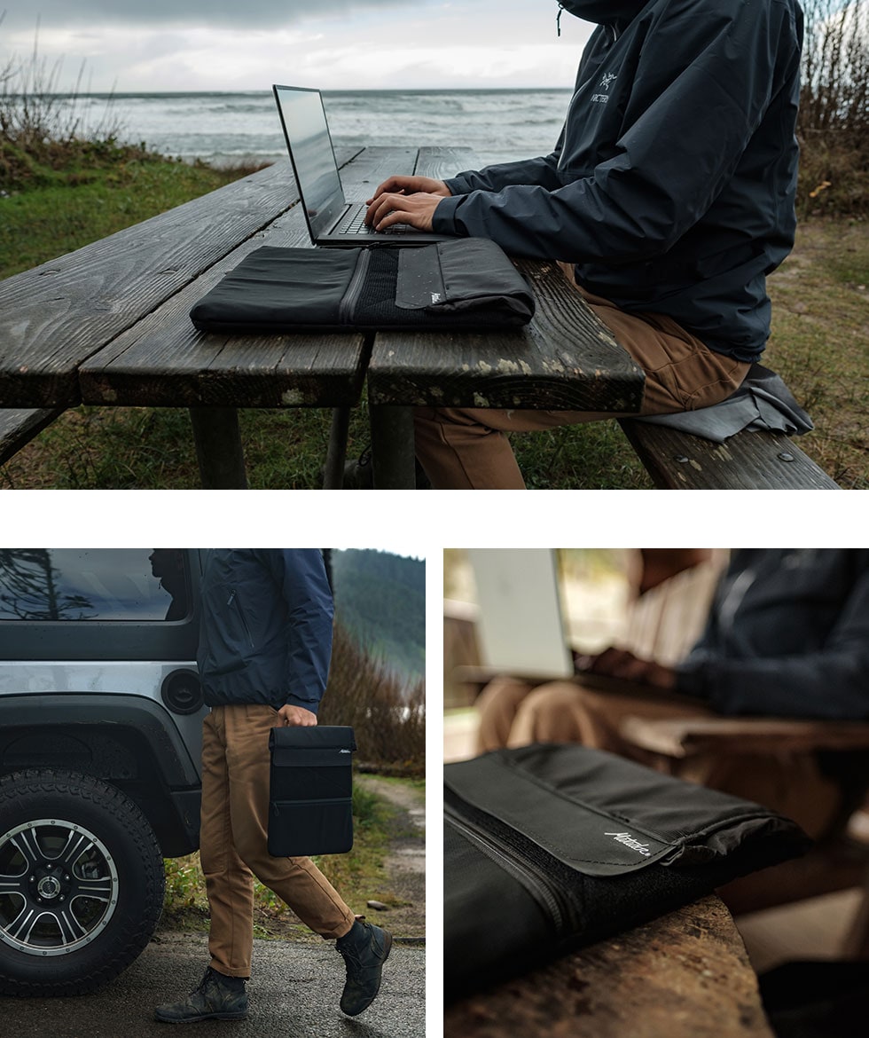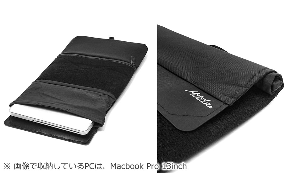 ノートPCを傷や衝撃から守るPCケース『Matador ラップトップベースレイヤー』。ハンドル付きで、そのまま持ち運んでもバックパックなどに入れてもかさばらない、すっきりとしたフォルムになっています。さらに、防水機能も備わり悪天候での移動でも頼りになる仕上がりが自慢です。