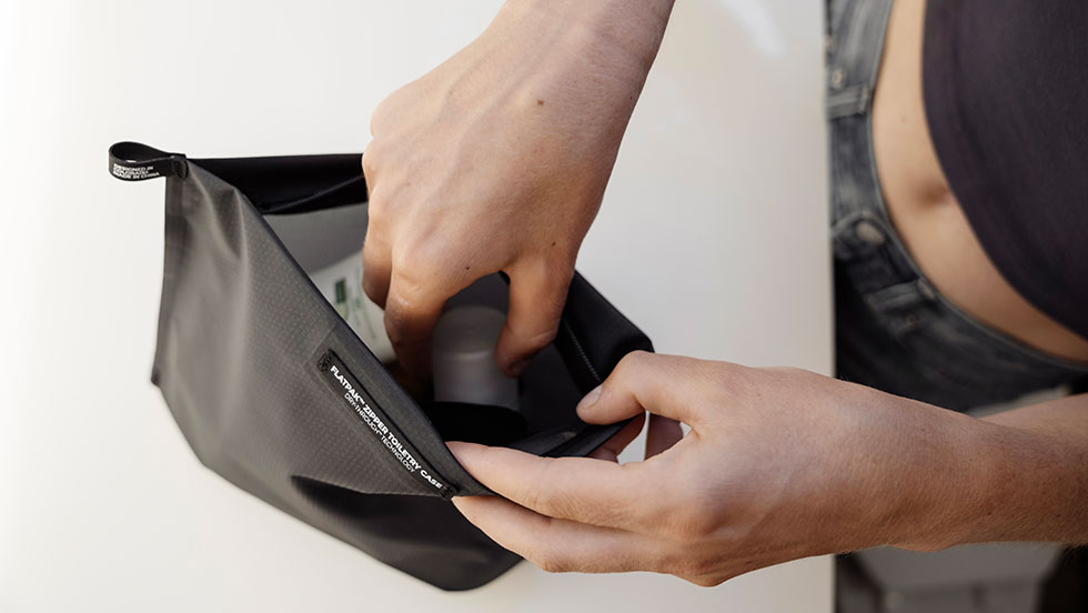 防水性の高い素材を使用したマルチトラベルポーチ。歯ブラシやカミソリなどの水分が素材を通してケース内で蒸発するため、シャワーアイテムや洗面台で使用するアイテムの収納に優れています。