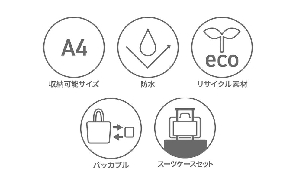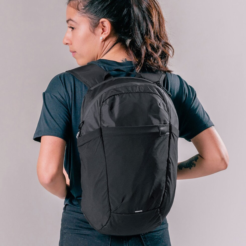 軽量なリサイクルナイロンを採用した、パッカブルバックパック。本体に搭載されているポケットに、折りたたむことでコンパクトに持ち運びが可能です。旅先で軽快に観光したり、サブバッグとしても活躍する便利なアイテムに仕上がっています。