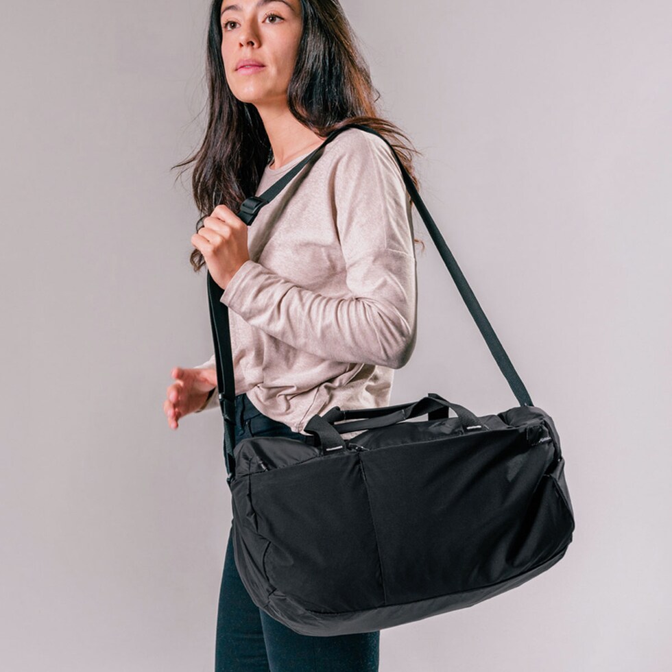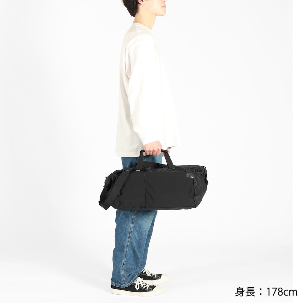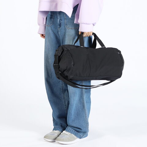軽量なリサイクルナイロンを採用した、パッカブルダッフルバッグ。本体に搭載されているポケットに、折りたたむことでコンパクトに持ち運びが可能です。ショルダーと手提げの2Wayで使用することができ、ジム通いやスポーツ、旅行など、様々なシーンで活躍します。