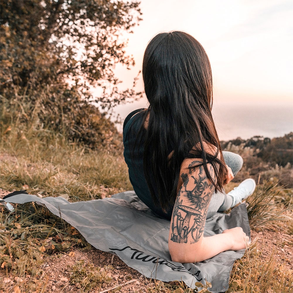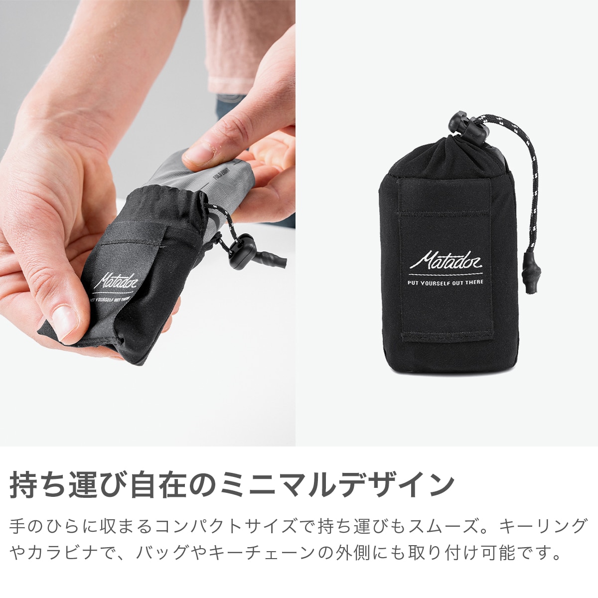 キーホルダーサイズまで小さく収納できるポケットブランケット。特許取得の「Easy-Packパターン」がガイドラインとなり、簡単に折りたためます。高品質で耐水性・耐久性に優れた素材を使用し、どこでも清潔でドライな状態をキープ。大人1?2人にちょうどいいサイズ感で、四隅のサンドポケットは砂や石を入れて重しにすることができます。日常のお出かけからアウトドアまで、いつでも携帯できる便利なアイテムです。