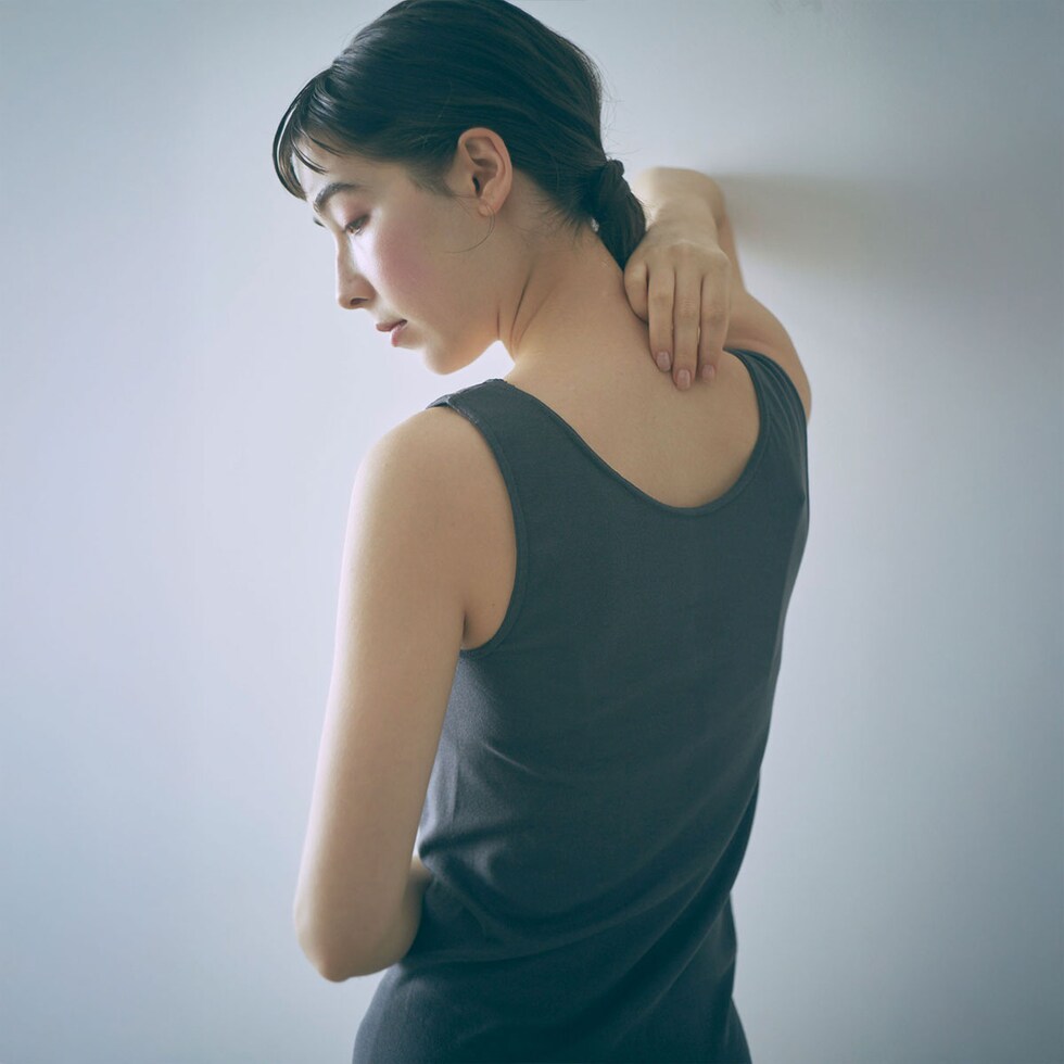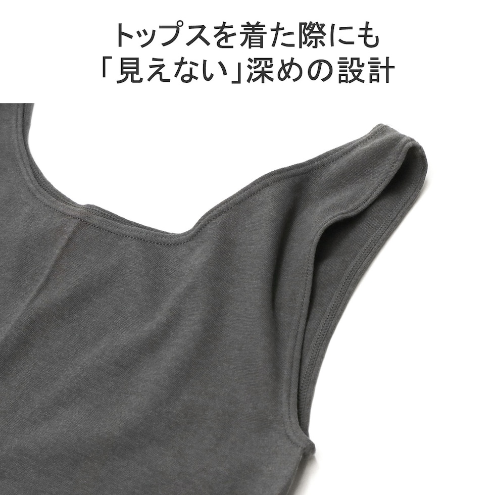 伸びが良く、優しいフィット感が心地良い「コットンシルク」シリーズの、タンクトップ。本体は首や肩まわりを深めに設定し、トップスを着た時に「見えないこと」を重視されたデザインに。また2層構造で厚すぎず薄すぎない生地感は、オールシーズンで使うことができます。さらに全体の丈が長いため、お腹まわりも冷やさず優しく包みこんでくれるところもポイント。