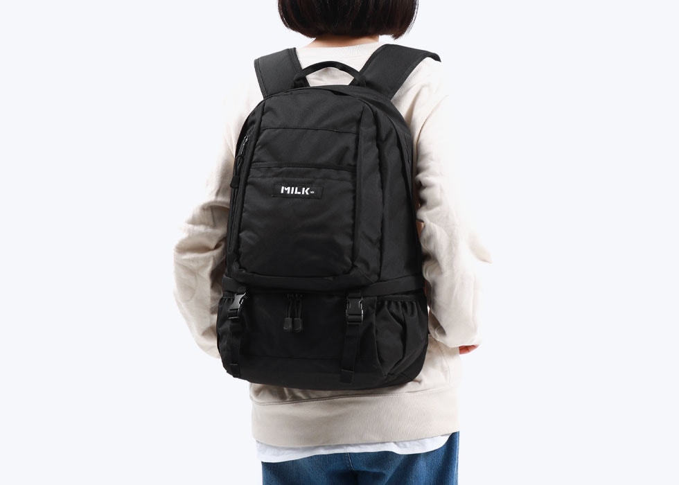 MILKFED.で定番人気のリュックサック。落ち着いたカラーリングとベーシックなデザインで、通勤・通学の普段使いから休日のレジャーまで、シーンやコーディネートを選ばずに使える優秀なアイテムです。