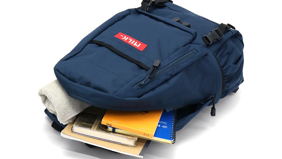 B4サイズにも対応する広々としたメインルームは、毎日の通学や、荷物の多くなりがちなアクティブシーンにもピッタリの収納力。デイリーに、旅行に、様々なシーンで活躍してくれるサイズ感です。