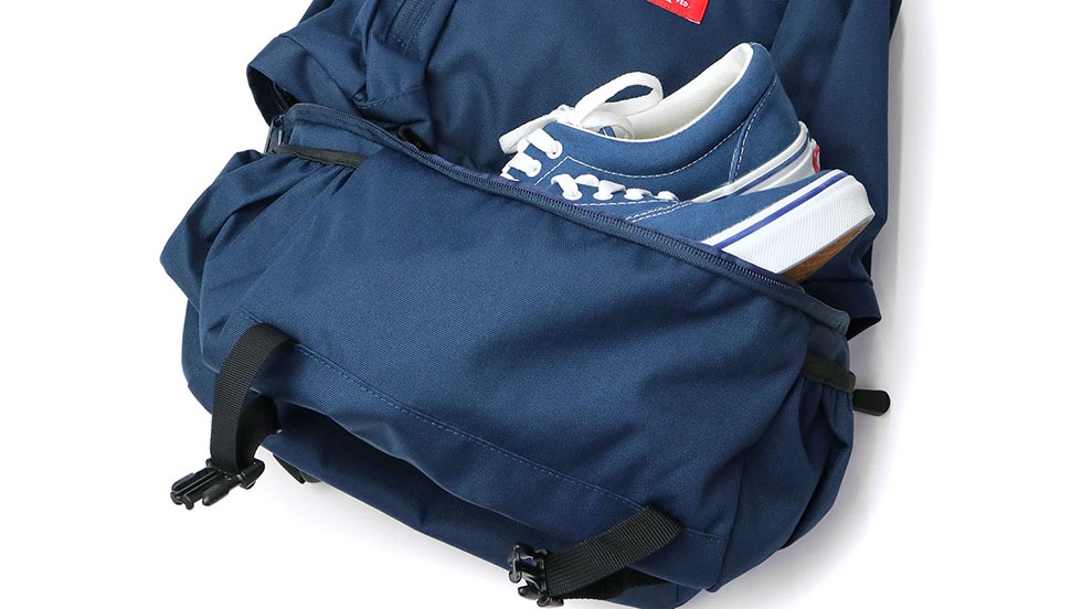 内部には開閉のできる仕切りが設けられており、メインルームの下部を別の収納部として使用することができます。一枚隔てて収納することができ、シューズや使用済みの衣類等の収納に便利です。