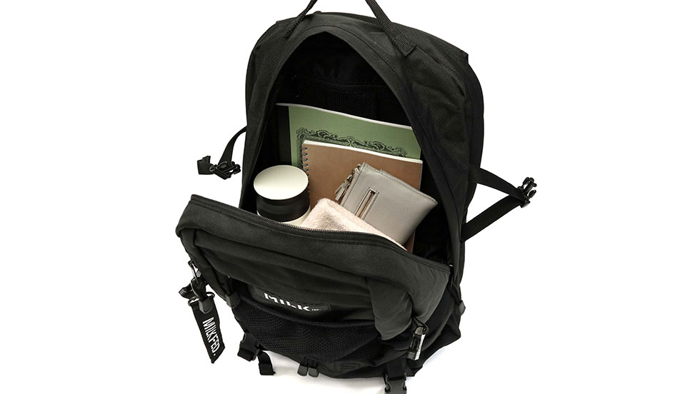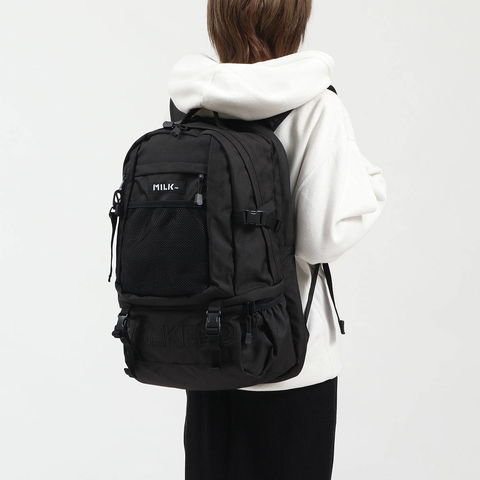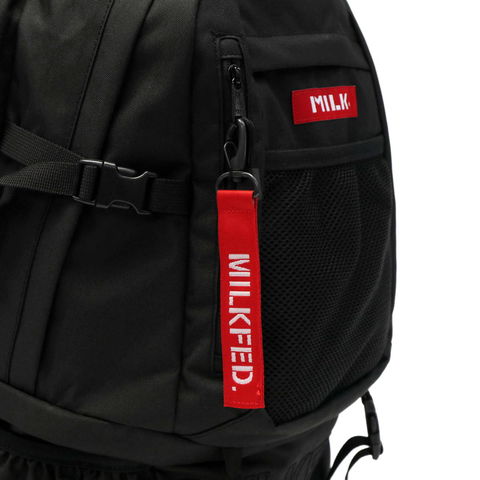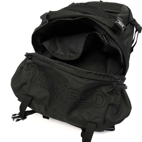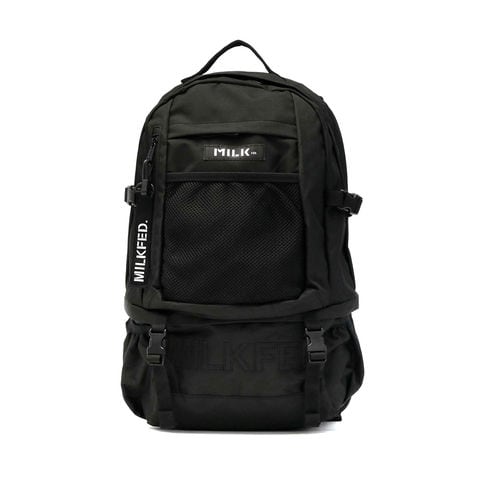 メンズライクなデザインに惹かれるMILKFED.のバックパック。やや立体感のある刺繍デザインとメッシュポケットを組み合わせたスポーティな印象です。Tシャツやフーディーなどを取り入れたストリートファッションと相性抜群!