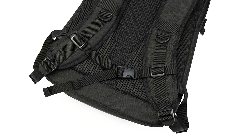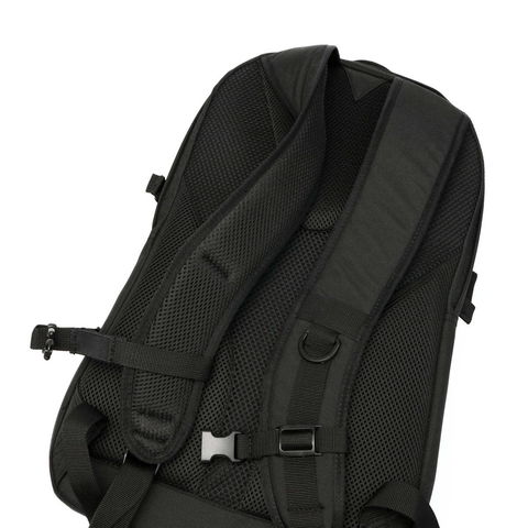 背負い心地を考慮した背面パッドと太めのリュックストラップで、肩への負担を軽減してくれるのも嬉しいポイント。さらにチェストベルト付きでリュックのズレを防ぐ設計となっており、アクティブに活動していただけます。
