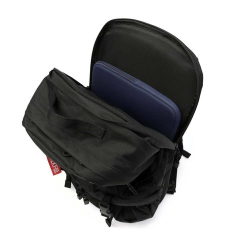 大きく開くメイン収納口は荷物を出し入れしやすく、たっぷり詰め込めて使い勝手もばっちり。A4サイズのファイルや教科書など、通学に必要な荷物をしっかりと収納できます。アウトスペース背面には、クッション性のあるPC収納部も備わります。