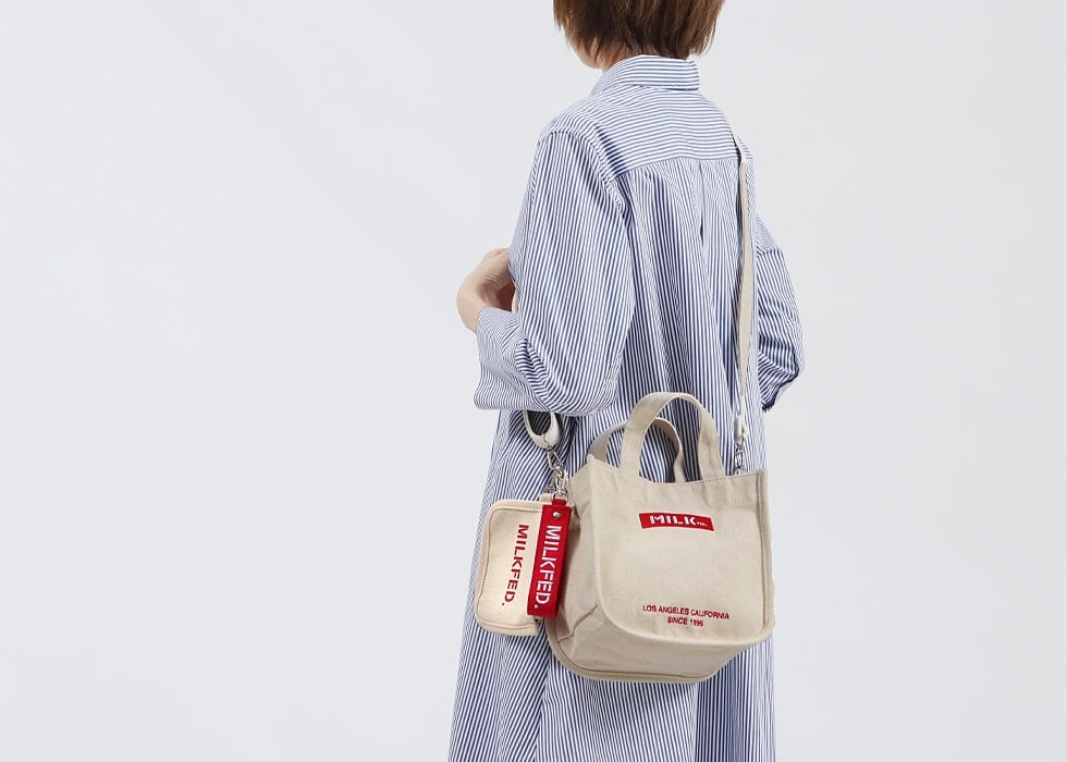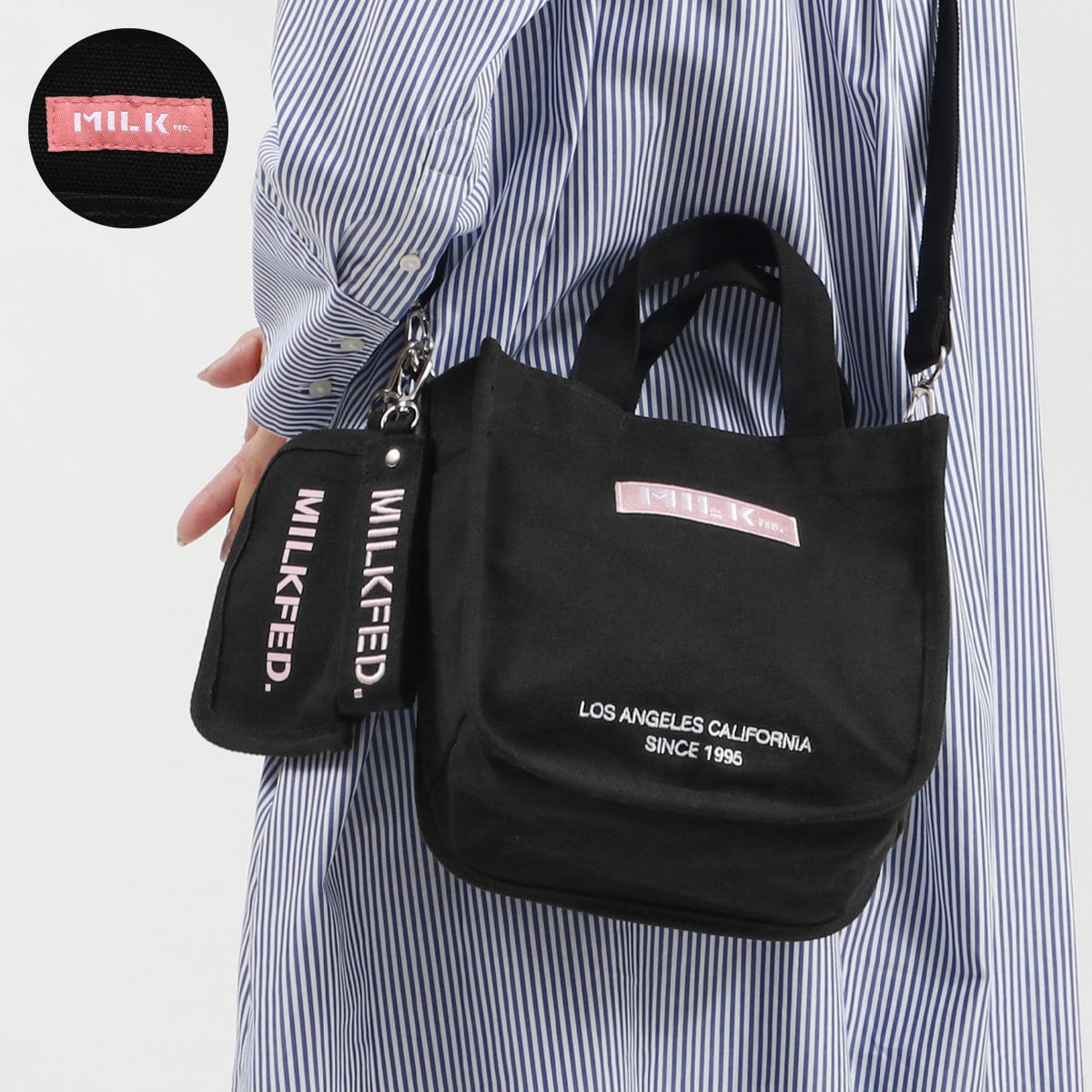 - > ミルクフェド ショルダーバッグ MILKFED. EMBROIDERED BAR MINI SHOULDER BAG W/STRAP バッグ トートバッグ 2WAY 斜めがけ ミニトート 小さめ コンパクト 中学生 高校生 女子 レディース 103213053009