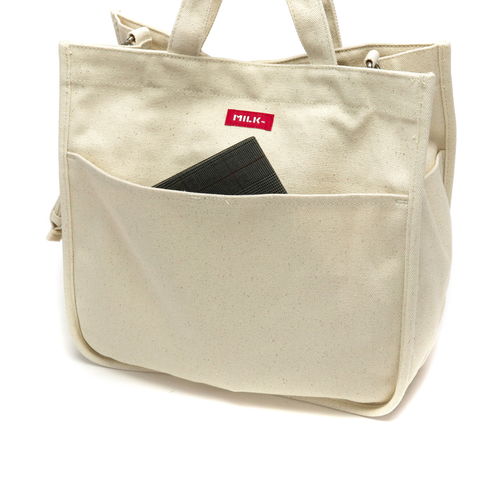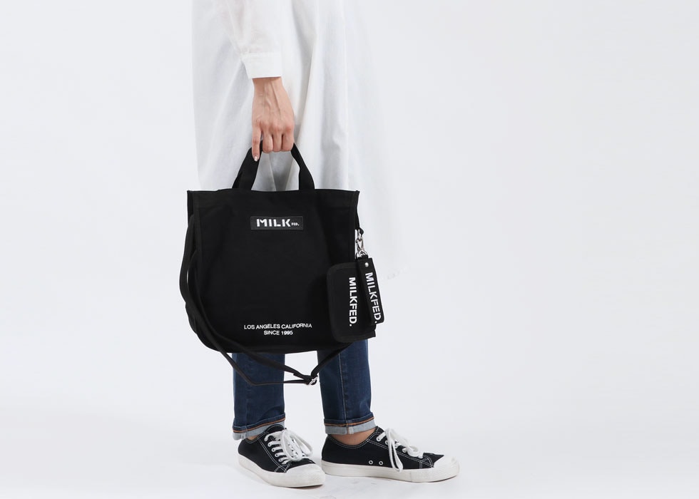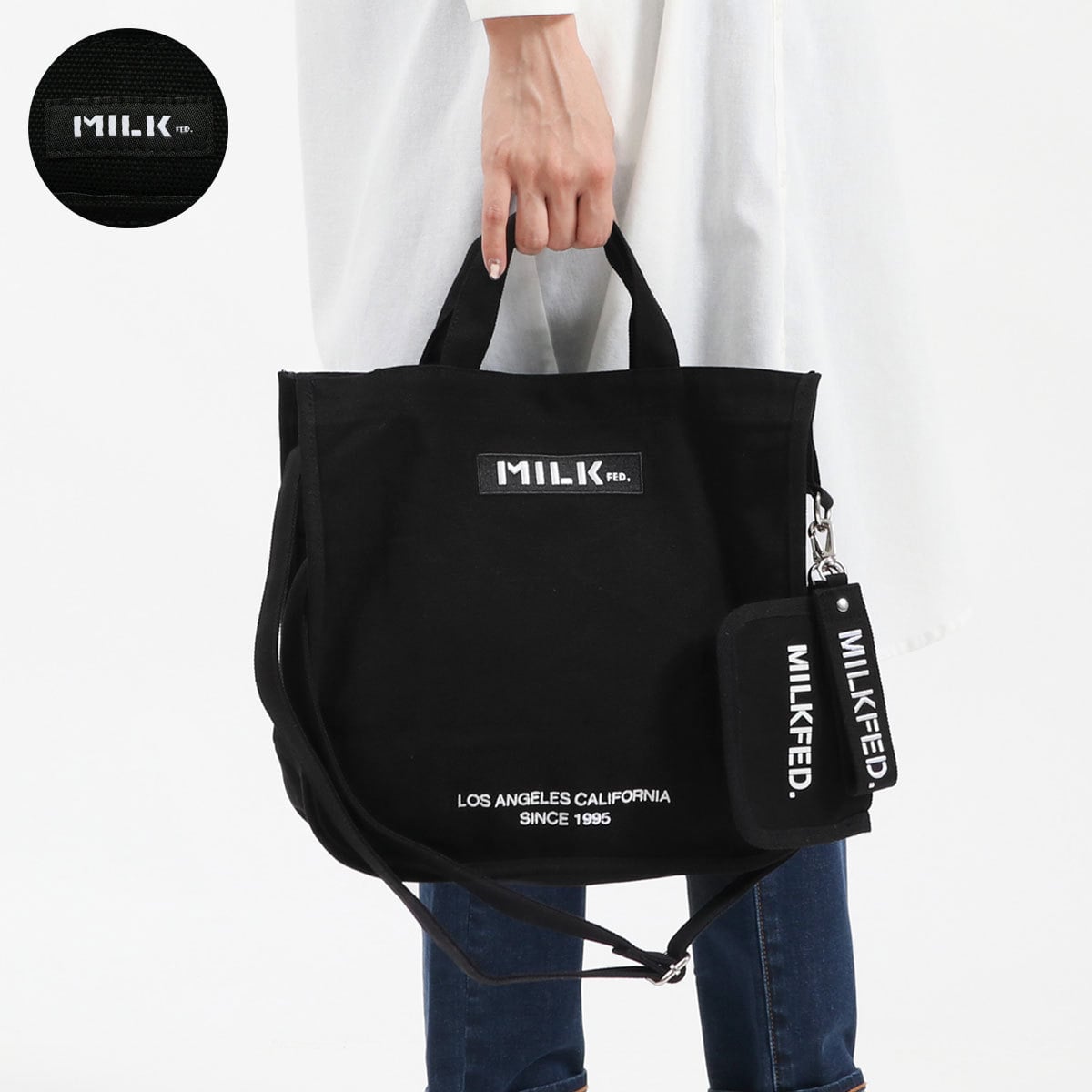ミルクフェド ショルダーバッグ MILKFED. EMBROIDERED BAR SHOULDER BAG W/STRAP バッグ トートバッグ 2WAY 斜めがけ B5 中学生 高校生 女子 レディース 103213053010