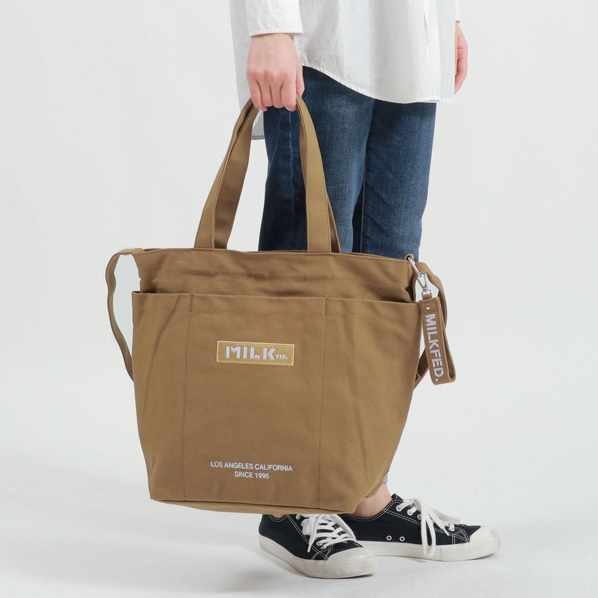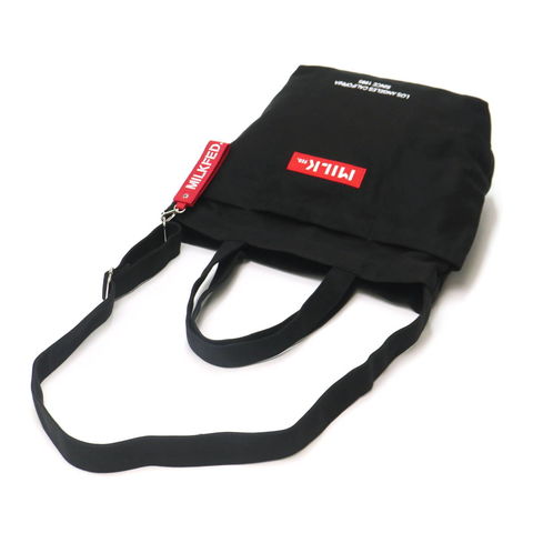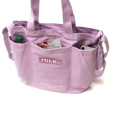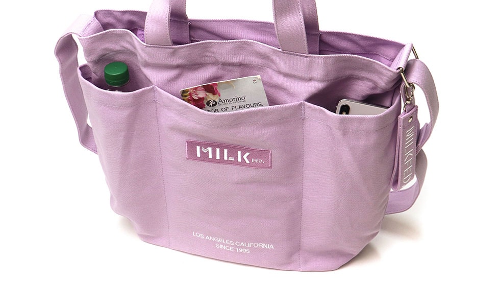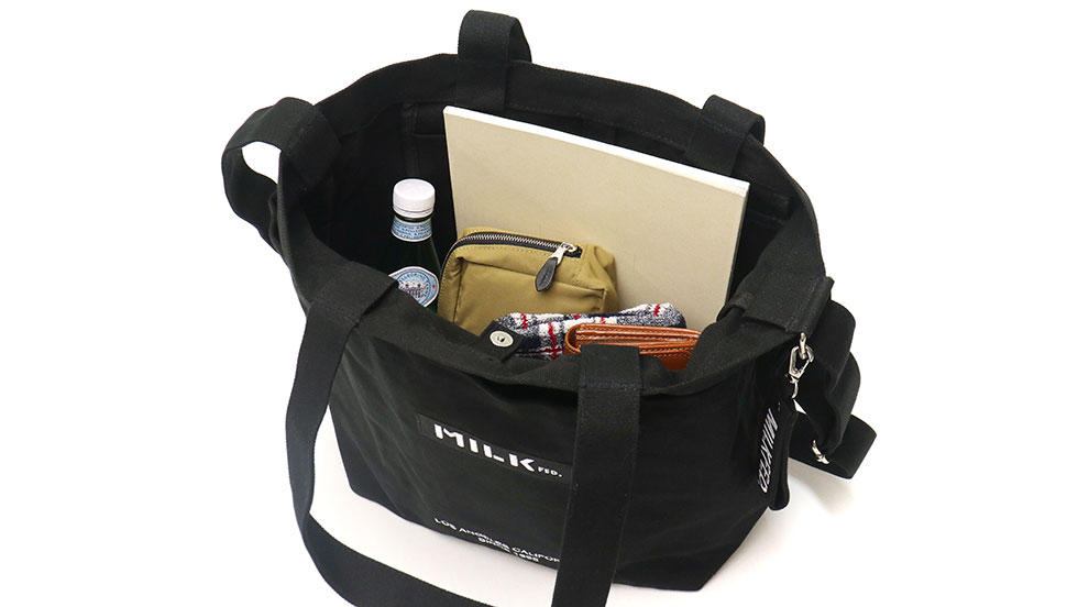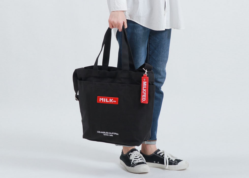 MILKFED.で人気のBARロゴデザインが魅力のトートバッグ。肩掛けしやすい長めのハンドルとショルダーストラップで、その日のスタイルやシーンに合わせて使い分け出来る嬉しい2way仕様!シーズンレスで使えるカジュアルなキャンパス生地を使用したシンプルデザインで、幅広いシーンで重宝できるアイテムです。