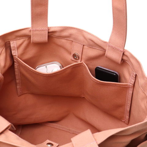 メインルームはB4サイズに対応。シンプルな内装のつくりで、お財布やポーチなどの必需品の他、テキストやお弁当などもまとめて一緒に収納できる容量になっています。内側には大きさ違いのポケットを2つ備え、小物の管理もバッチリ。大きすぎず小さすぎない程よいサイズ感がデイリー使いしやすいポイントです。