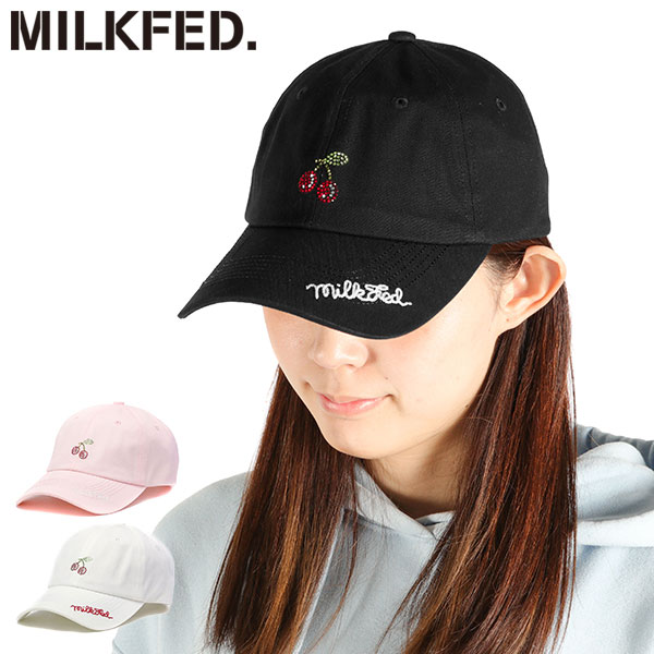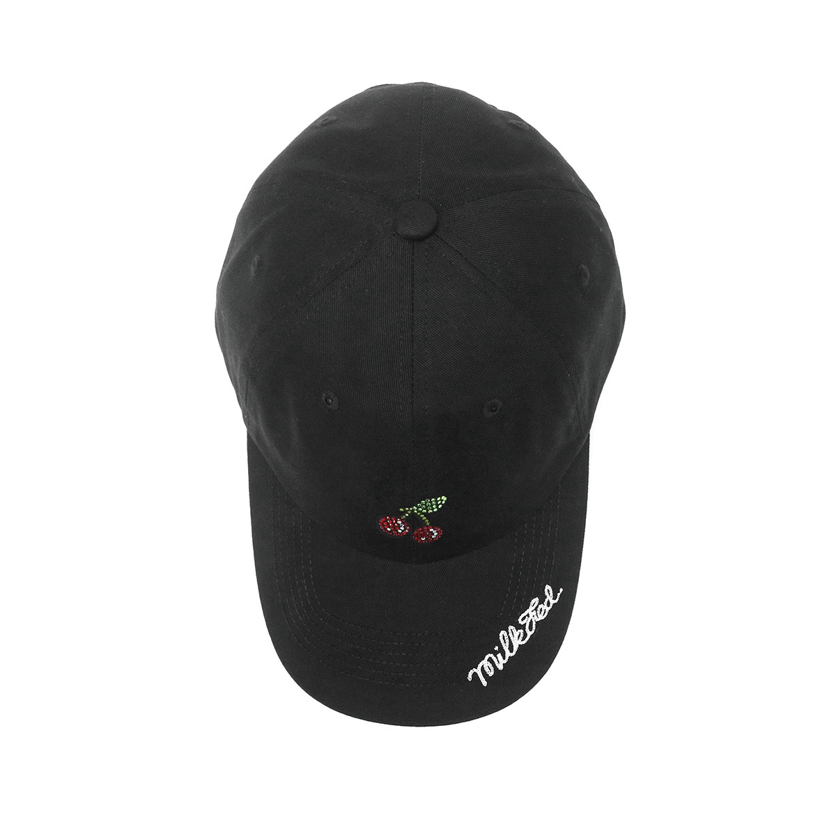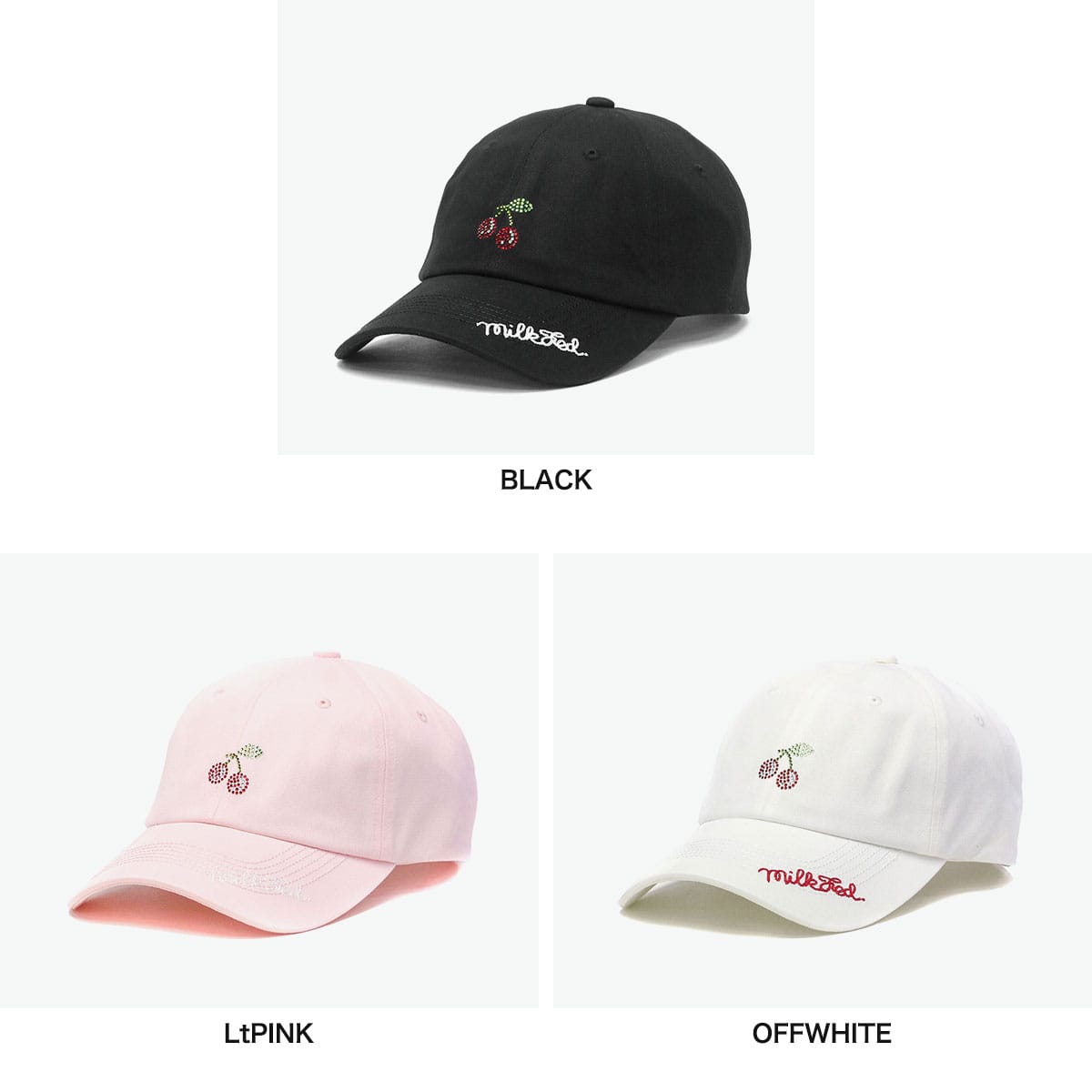 ラインストーンで描かれたチェリーとロゴ刺繍がポイントのベーシックなツイル素材のキャップ。懐かしい雰囲気のチェリー柄のラインストーンモチーフが目を惹きます。さらに、「MILKFED.」では新しいデザインとなる、ツバ先にロゴ刺繍を入れたアイテムとなっています。