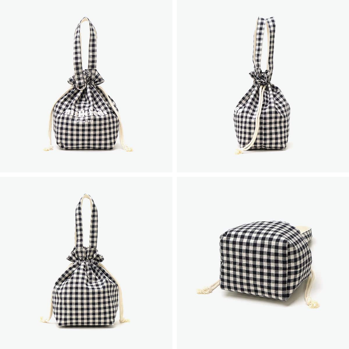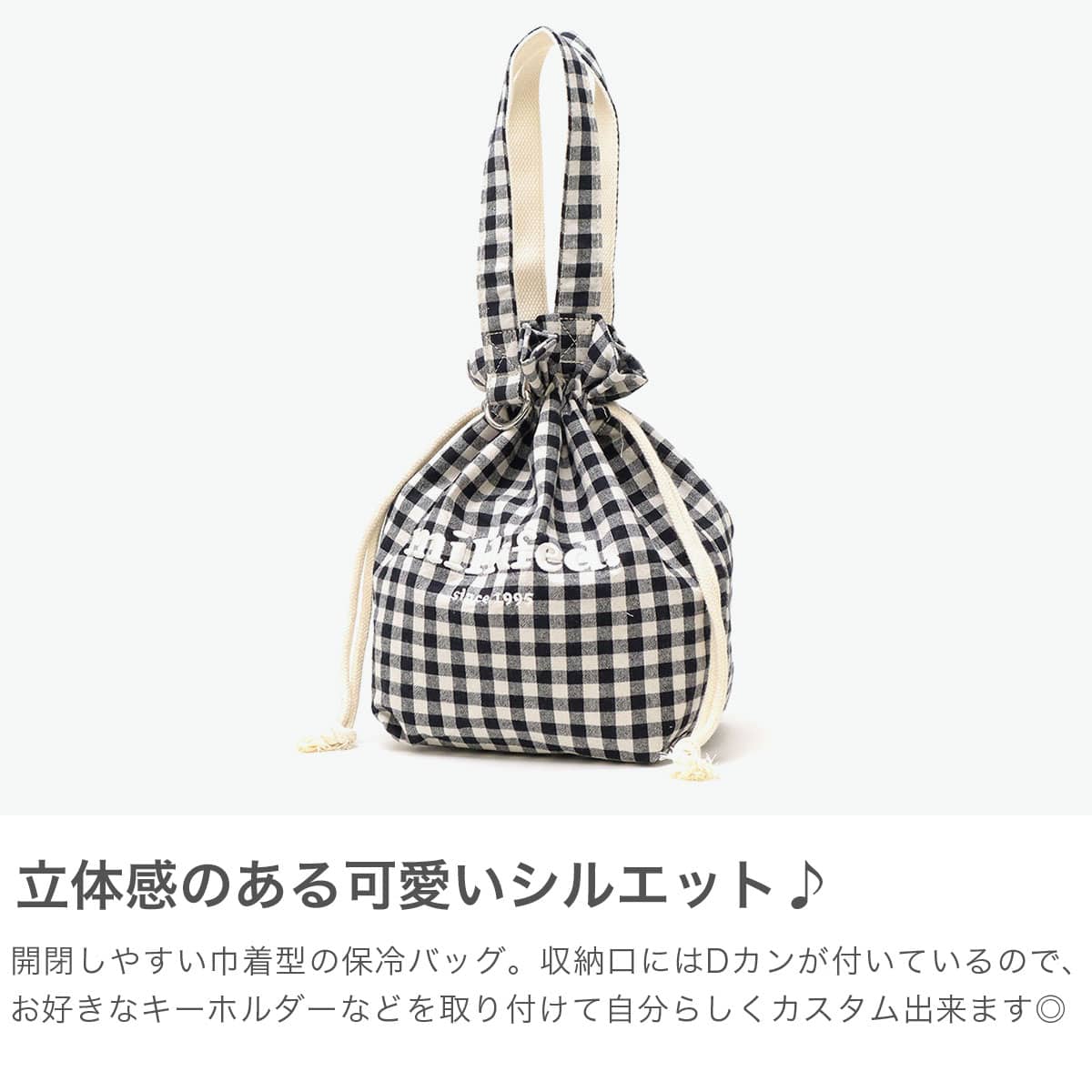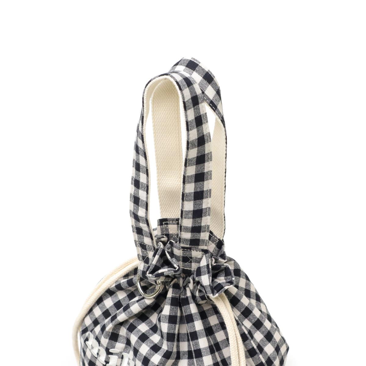 ギンガムチェックにブランドロゴの刺繍がポイントのランチバッグ。開閉がしやすく、絞った時のフォルムが可愛い巾着型です。ランチバッグとしてはもちろん、普段使い用のバッグとしても◎。コーデのアクセントになる愛らしいデザインに仕上がっています。