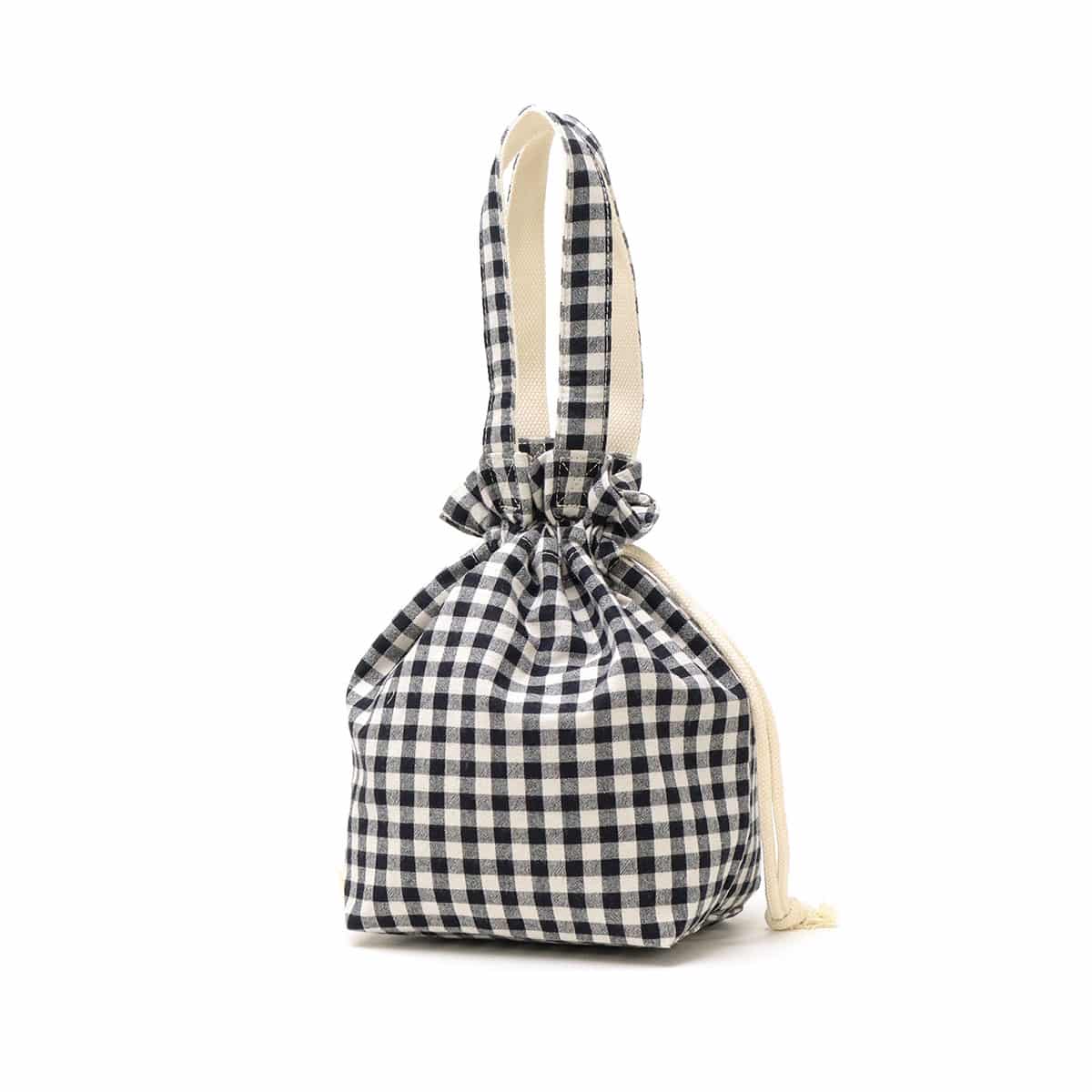 ギンガムチェックの巾着型ランチバッグ
