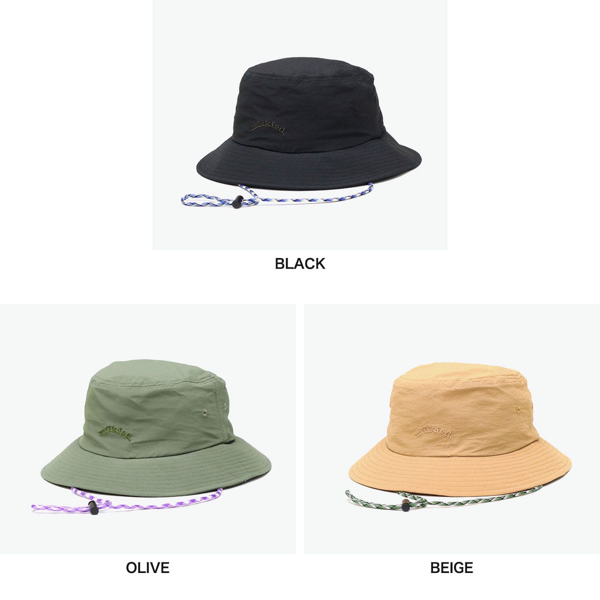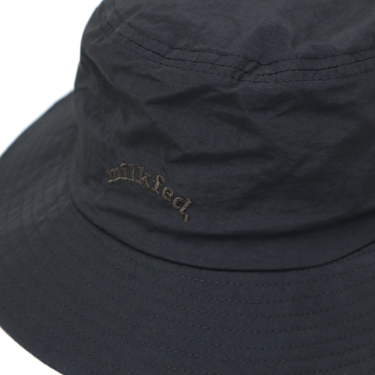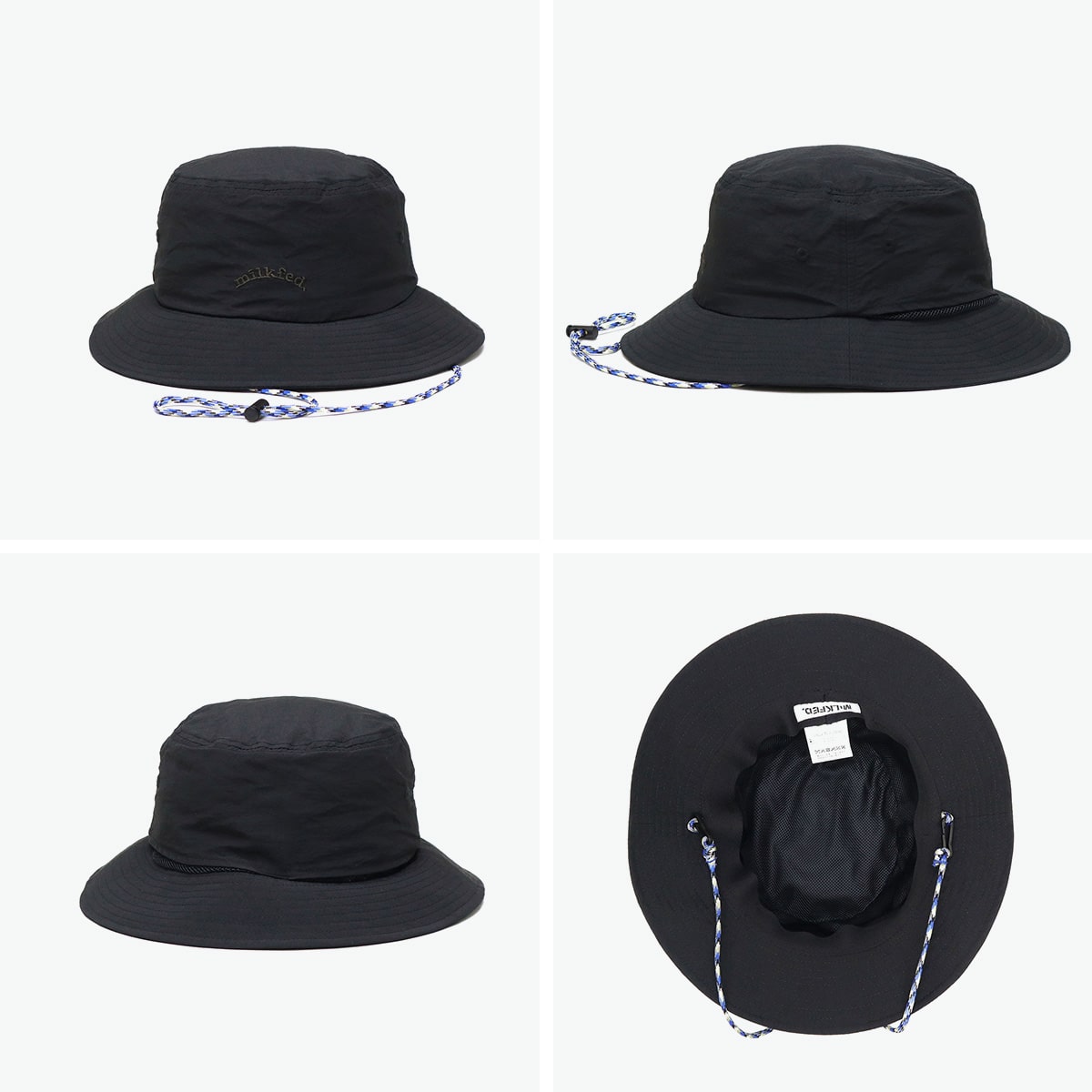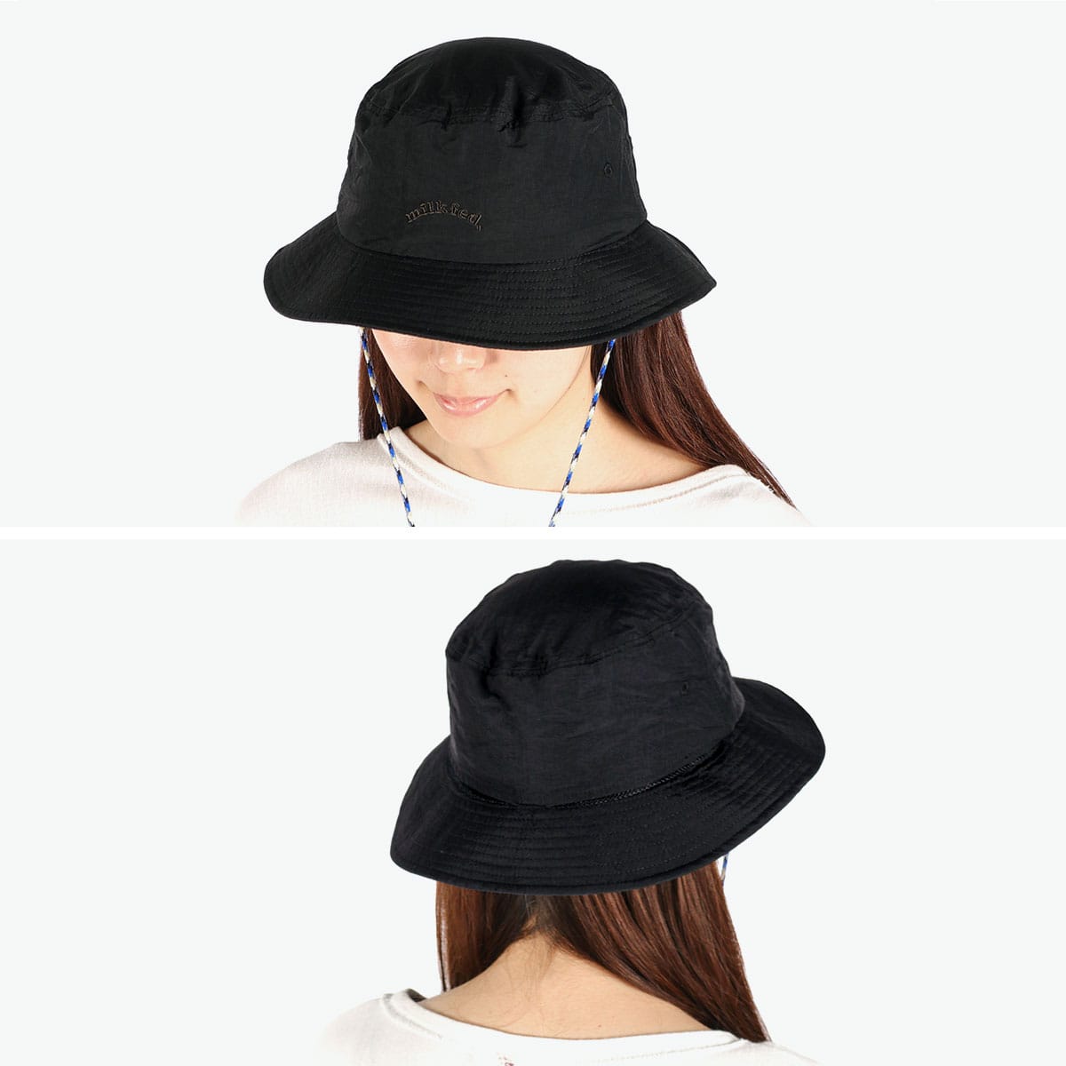 MILKFED.のロゴ刺繍入りバケットハットです。UVカット率99.9%・UPF55%で紫外線対策に最適。吸水速乾・撥水・消臭・抗菌機能など頼れる機能が満載です。取り外し可能なマルチカラーコード付きで、アウトドアや旅行にぴったりのアイテムです。